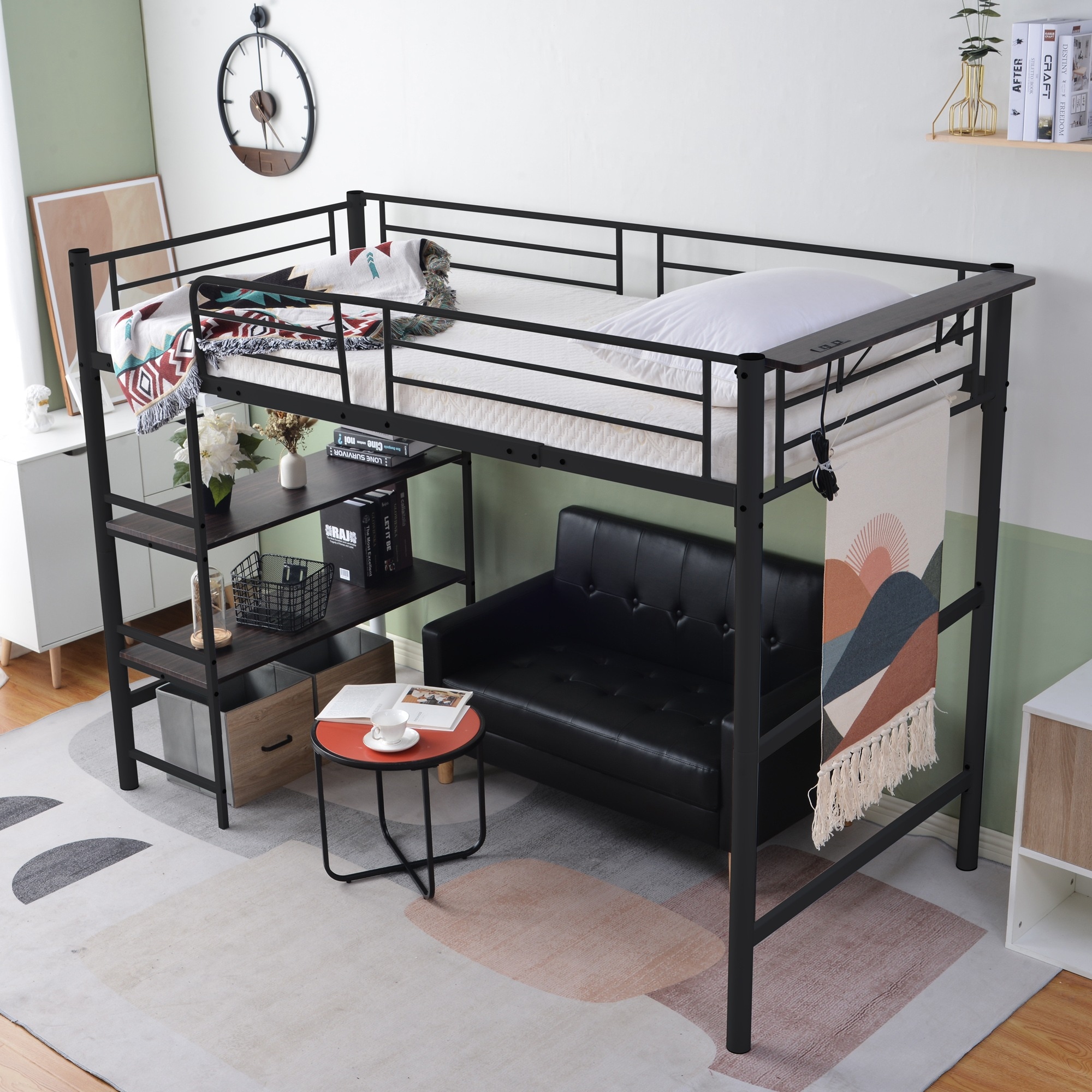 パイプベッド ロフトベッド シングル コンセント付き 収納 子供ベッド 子供部屋 スチール 耐震 ベッド シングル パイプベッド パイプ 収納付き ラック付き WF303621AAA