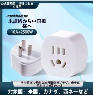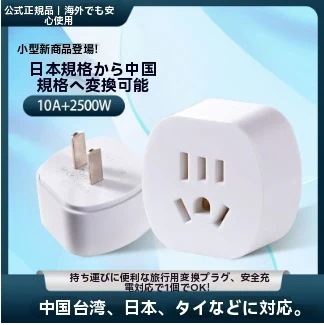 即納 旅行用 中国製電気製品の電源タップ(3個口)を国内標準の2個口に変換