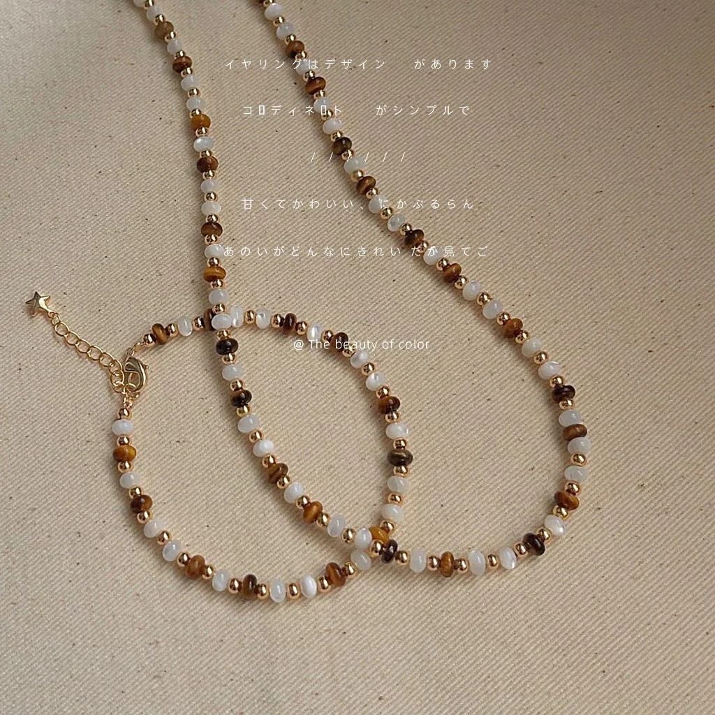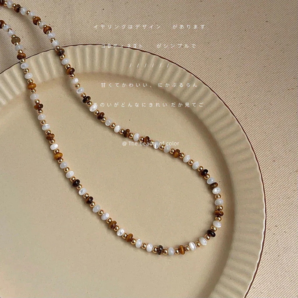 テクスチャ虎目石ネックレス プレミアム感シェル手作り気質汎用性の高い新しい中国のネックレスネックレス