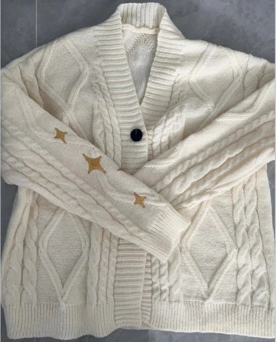 速やかに出荷し24かびとぶどうの紫カーディガンあばたの袖口刺繍星のねじりひもの同じセーター