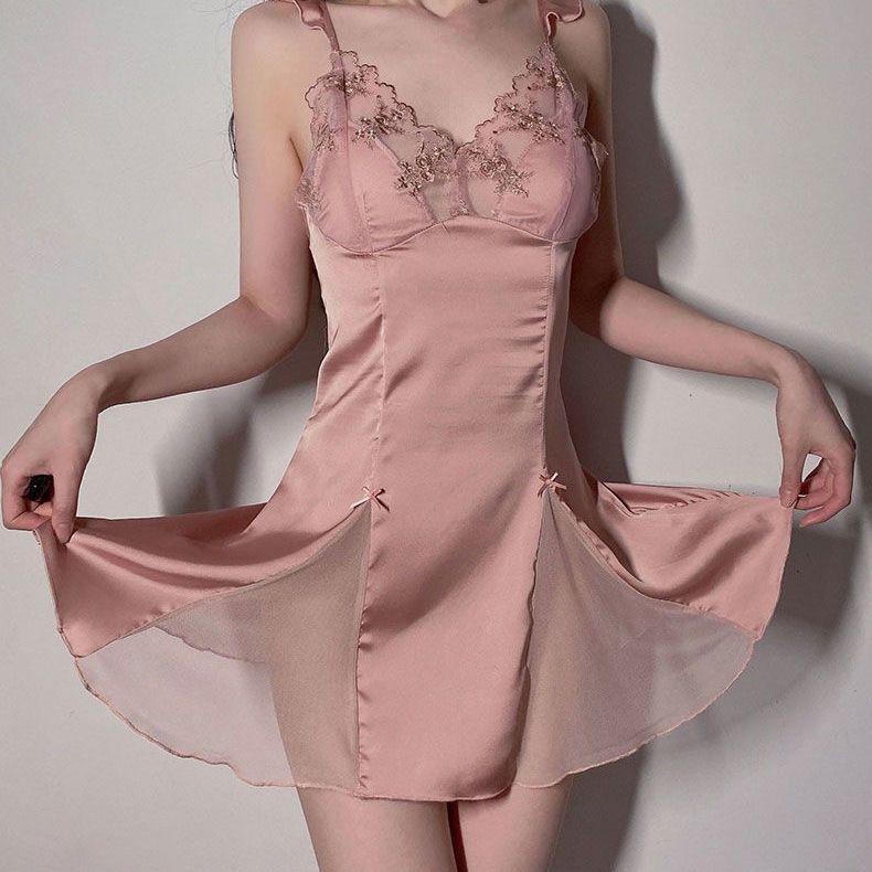 夏パジャマ パジャマ ルームウェア セクシーパジャマ夏のアイスリボン胸当て薄レースキャミソール寝スカート部屋着