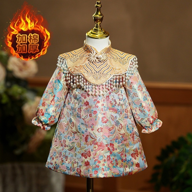 女の赤ちゃんのための1年のドレスは1歳の女の子を捕まえます1歳の宴会チョンサムチャイニーズビーズ刺繍プリンセススカート