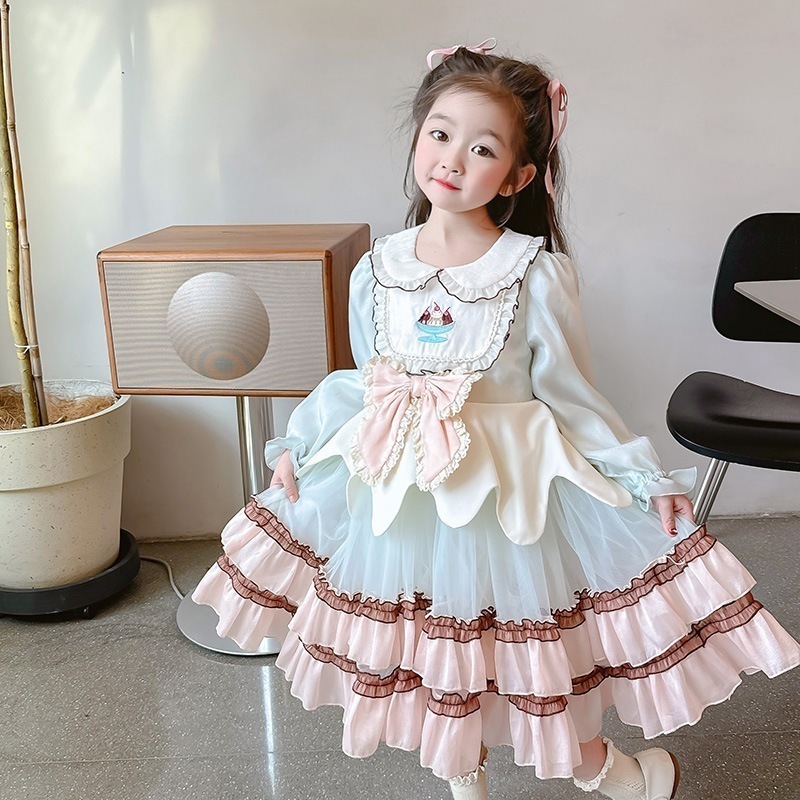 女の子のプリンセスロリータドレス2025女の赤ちゃんスプリングドレススプリングメッシュスカートスカートチルドレンズドレス