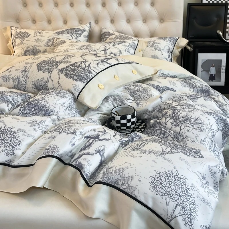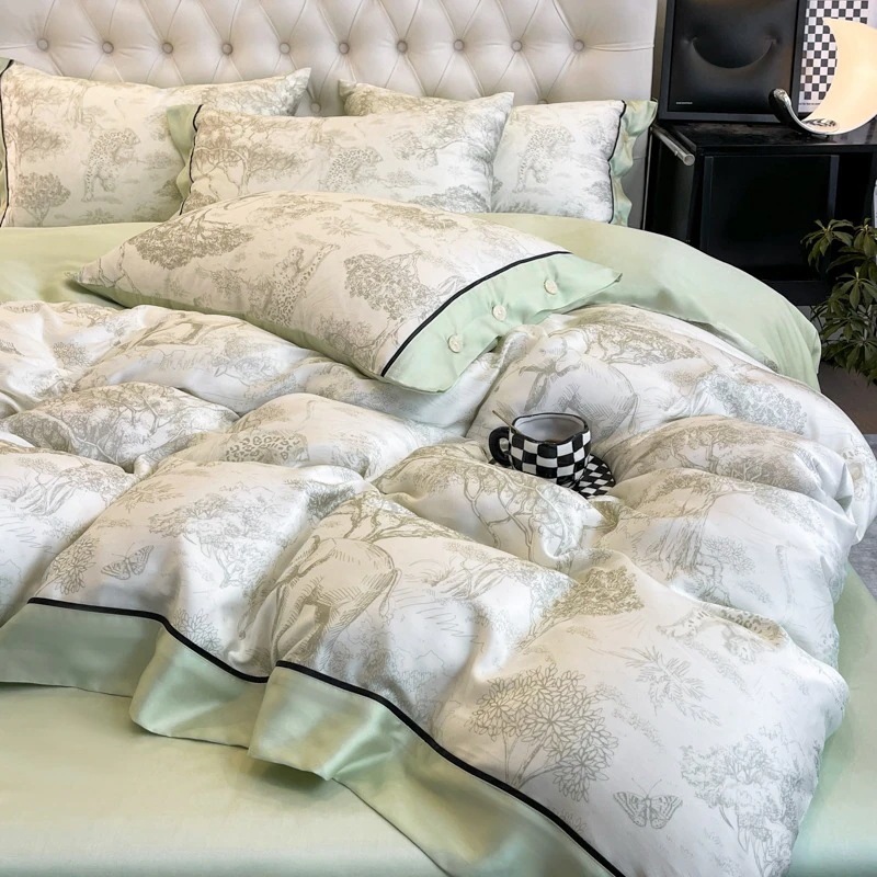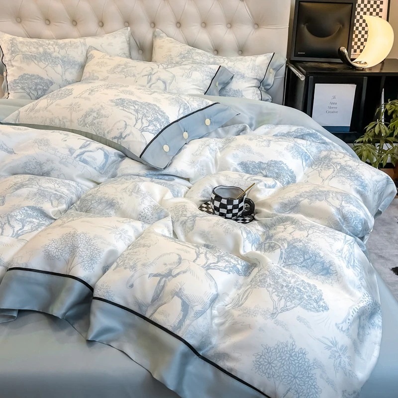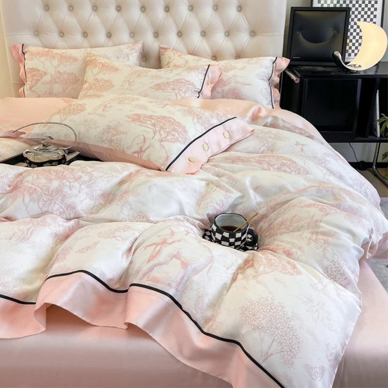 夏のアイスシルクの光豪華な4ピース夏モデル光豪華な夏の洗浄キルトカバーシート寮スリーピース寝具セット