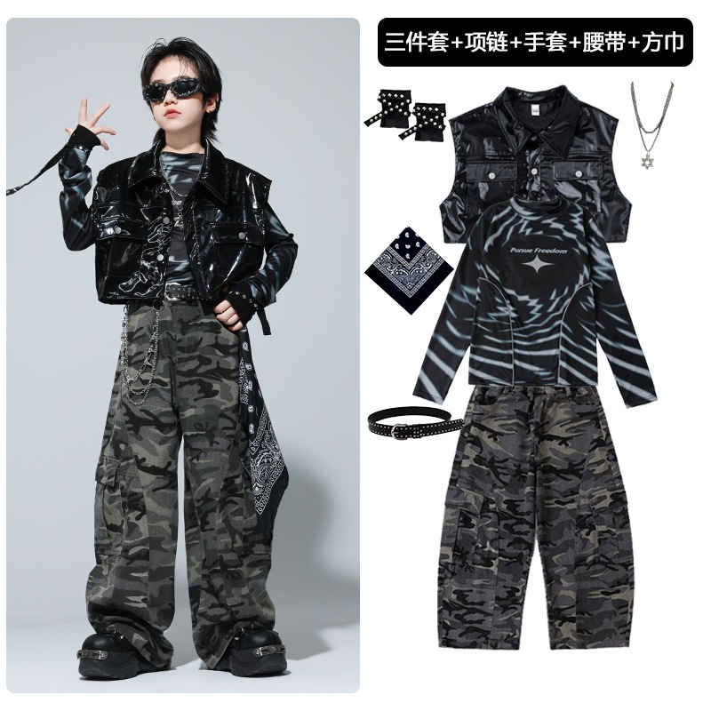2026年ストリートダンス子供&小学生用学生用ドラムセット ヒップホップ パフォーマンス衣装 女の子用 ファッションショー衣装