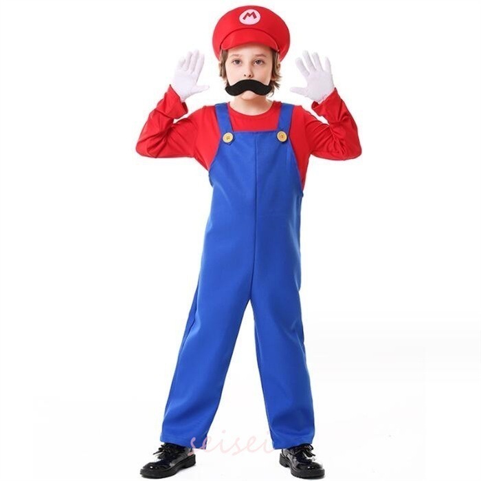 マリオ風 イベント衣装 人気 コスチューム 激安 コスチューム kids マリオ風 キッズ ハロウィーン仮装 子供用コスプレ コスプレ ハロウィン 5点セット