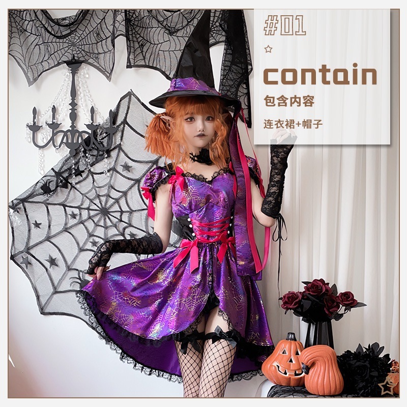 万圣节服装女角色扮演女巫装巫婆吸血鬼性感蜘蛛恶魔连衣裙女