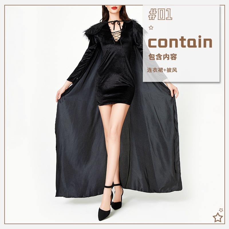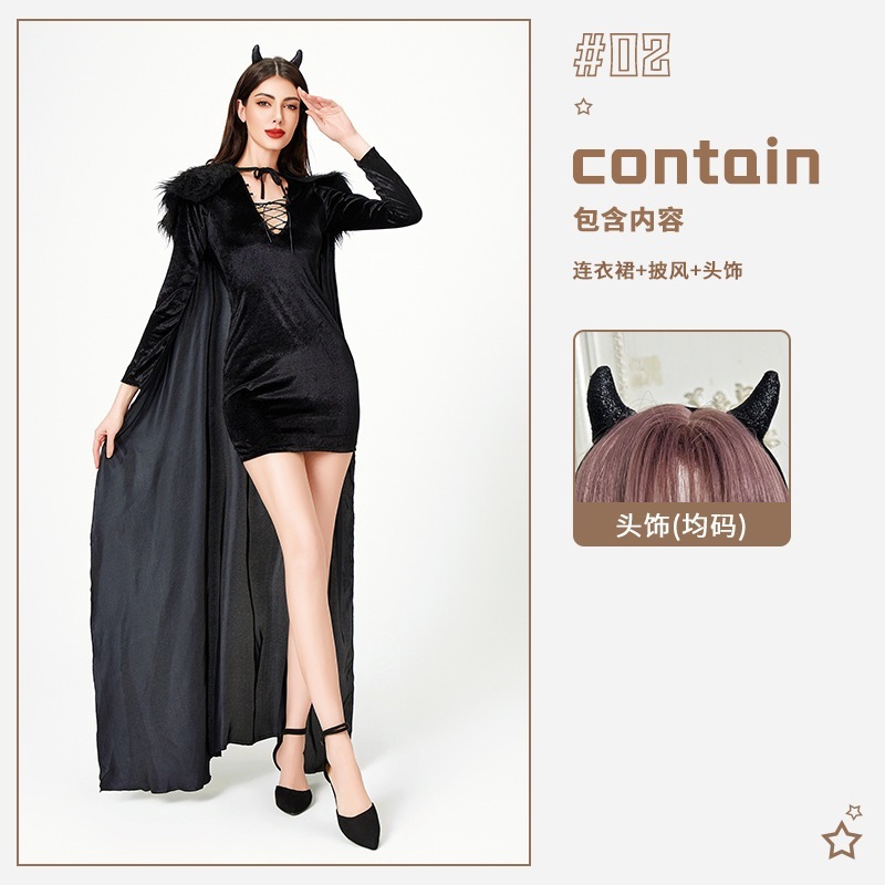ハロウィーン衣装女性悪魔女王舞台演技服ワンピース魔女装巫婆悪魔マント