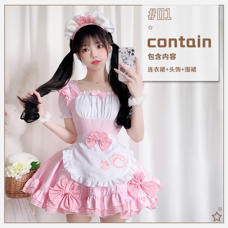 ピンクメイド服日韓コスプレアニメ男僕ワンピースロリcosメイド制服メイドプリンセススカート