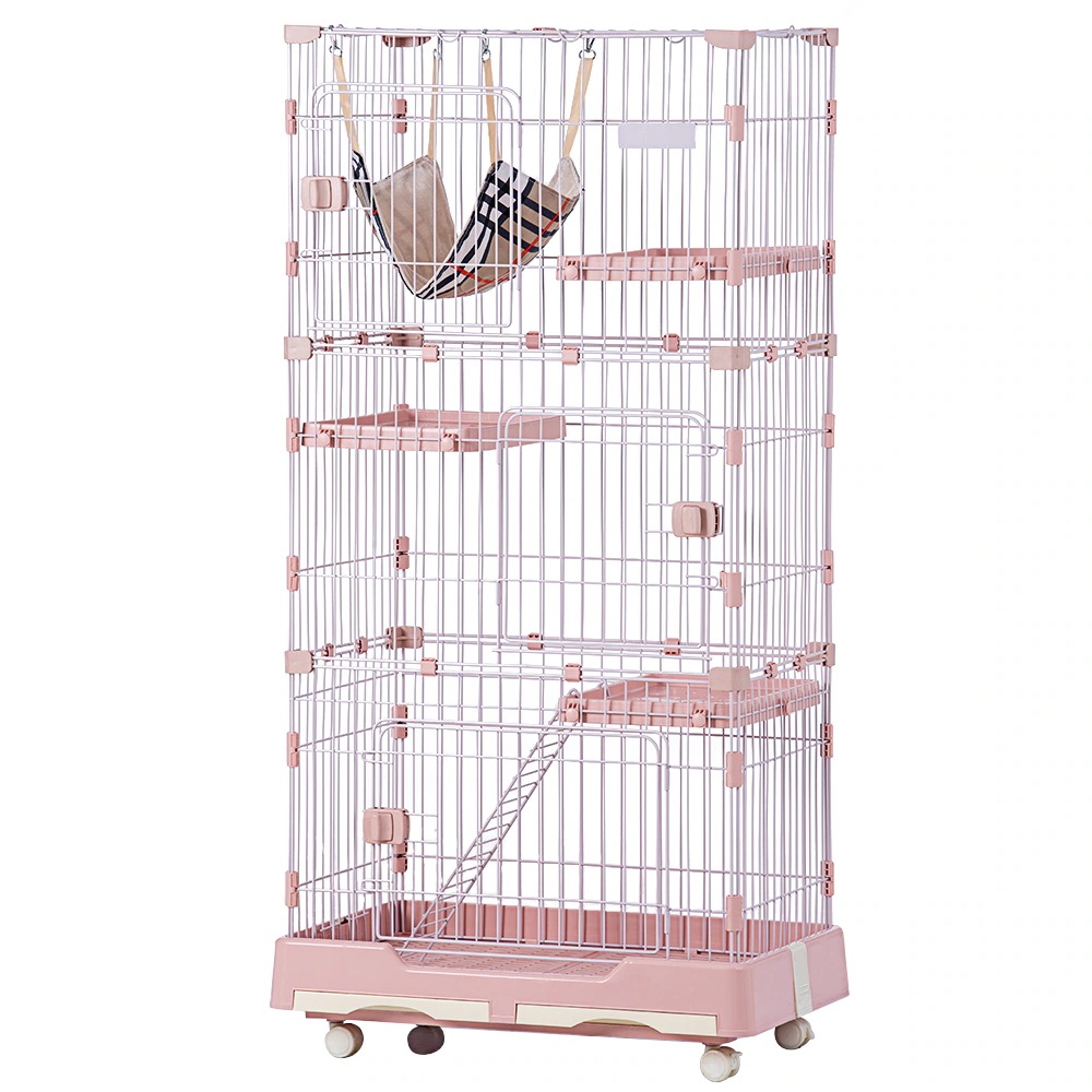 キャスター付 ネコドア 脱走防止 ペットケージ 1段2段3段可能 キャットハウス ケージ 留守番 おしゃれ キャットケージ 保護 大型 D猫 (3段 ピンク) 猫ゲージ 多頭飼い