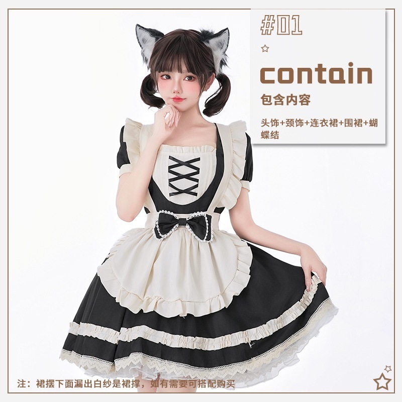 日韓柔らかい妹甘いopショートメイドワンピース2次元かわいいlolita白黒コスプレ服