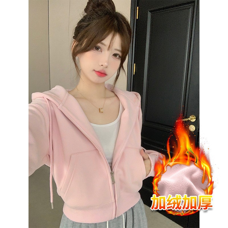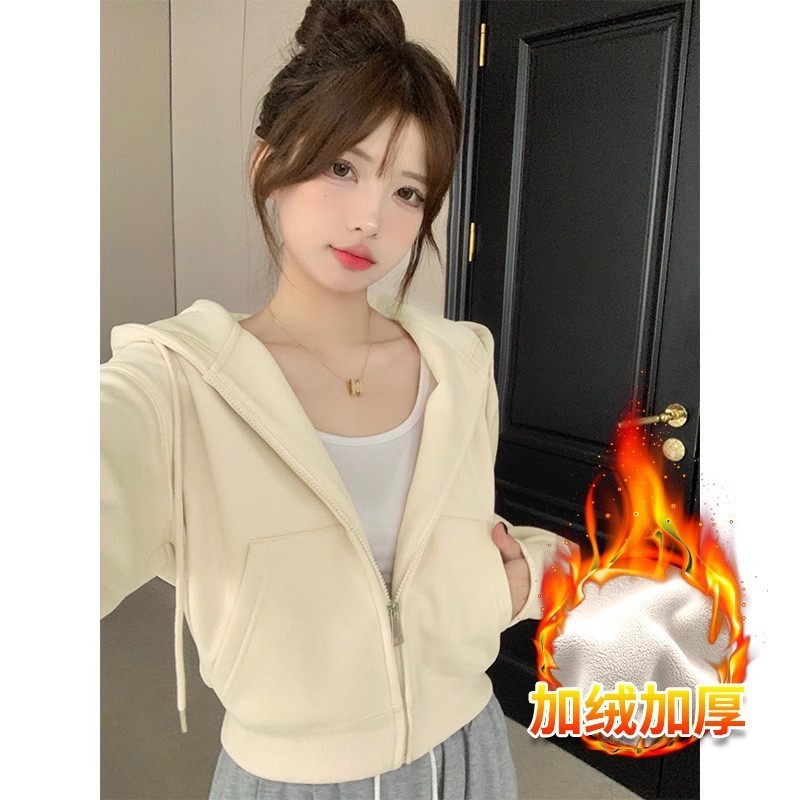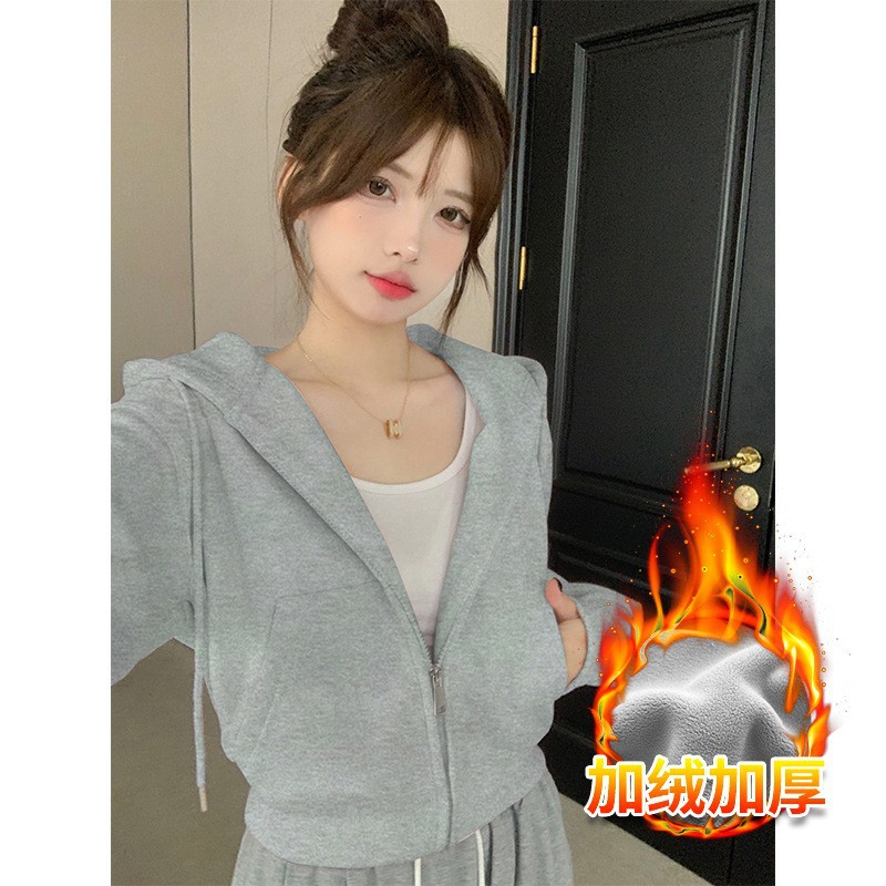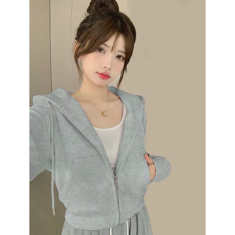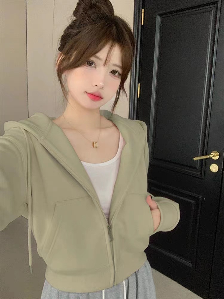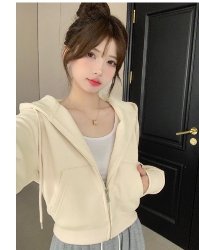 フード付きスウェットシャツレディース秋冬カーディガンショートジャケット初秋プチ衣装2025新作韓国シックトップス