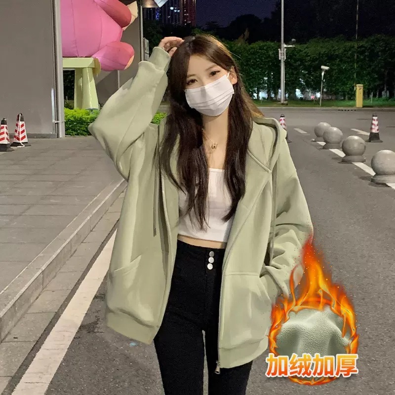 女性用ピンクジャケット春の女性の韓国の怠惰なスタイルのフード付きグリーン2025カーディガン韓国の新しい春のセーター