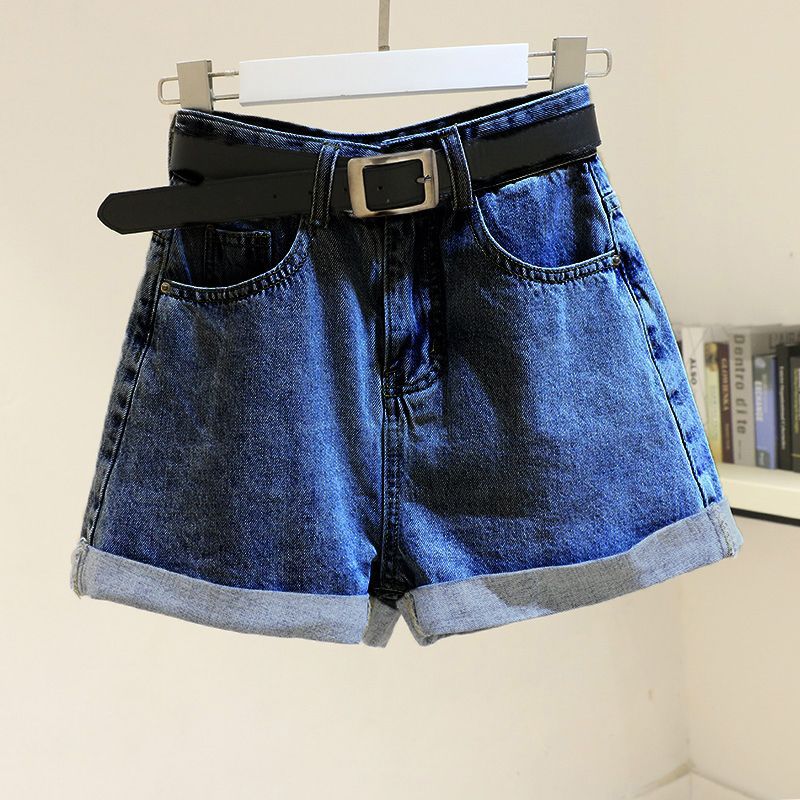 ライトブルーのロールアップデニムショートパンツレディース夏2025新作大きいサイズゆったりスリミングアウターワイドレッグAラインホットパンツ