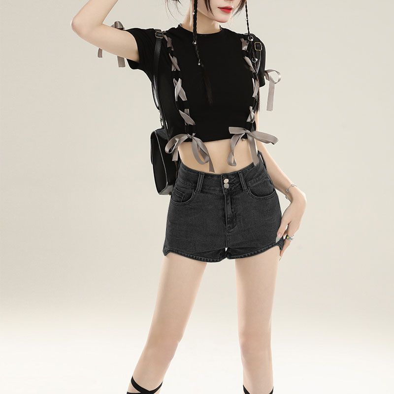 デニムショートパンツ レディース 薄手 2025 夏新作 ins スタイル ハイウエスト スリム Aライン スモール トール 伸縮性 ホットパンツ