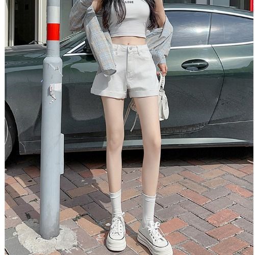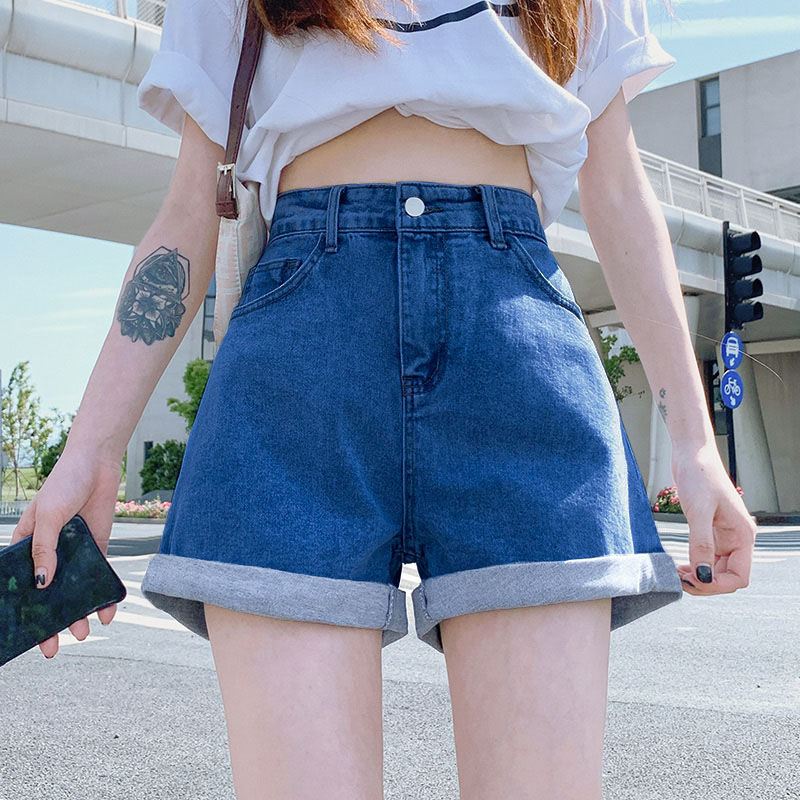 ブラック スモール ハイウエスト カール デニム ショートパンツ 大きいサイズ 2025 新作 Aライン ルーズ スリム ホットパンツ ワイドレッグパンツ