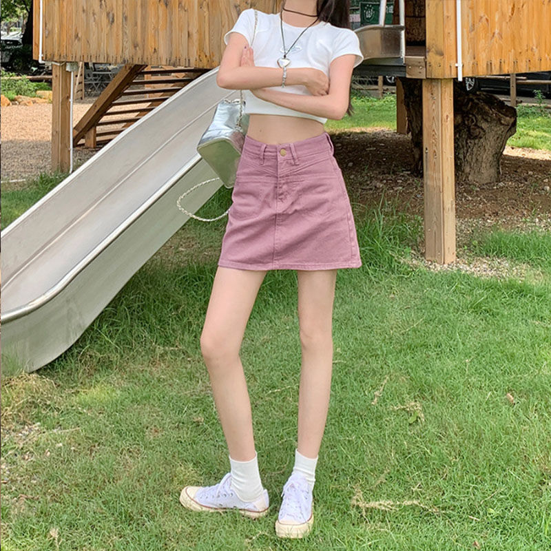 ホットガールハイウエストデニムミニスカートハーフ丈スカートレトロブルー2025春オールマッチAラインヒップスカートレディースファッション