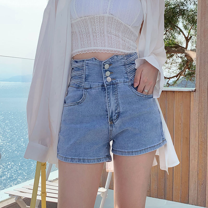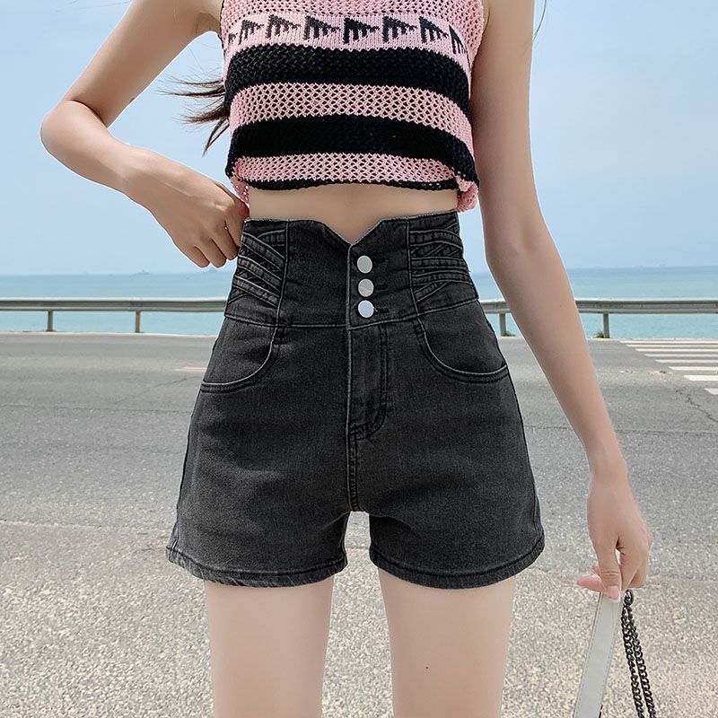 スリーブレストデニムショートパンツブラック2025伸縮性万能タイト新作ホットパンツ春レディースハイウエストスリム