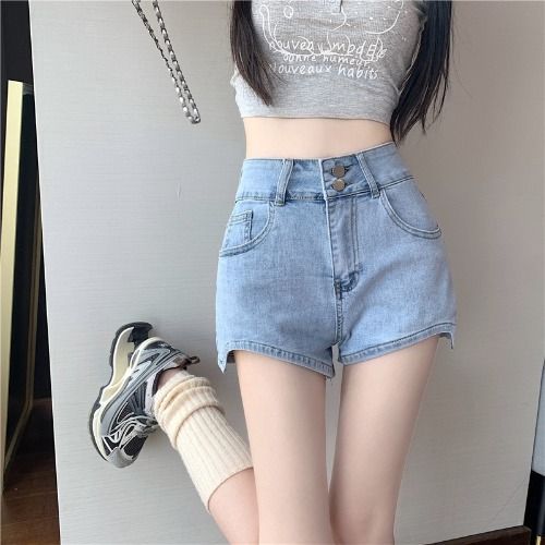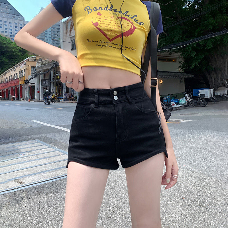 2025 ブラック 夏 新作 万能 ストレッチ デニム ショーツ スリム レディース Aライン ホットガール ハイウエスト ヒップ ホットパンツ