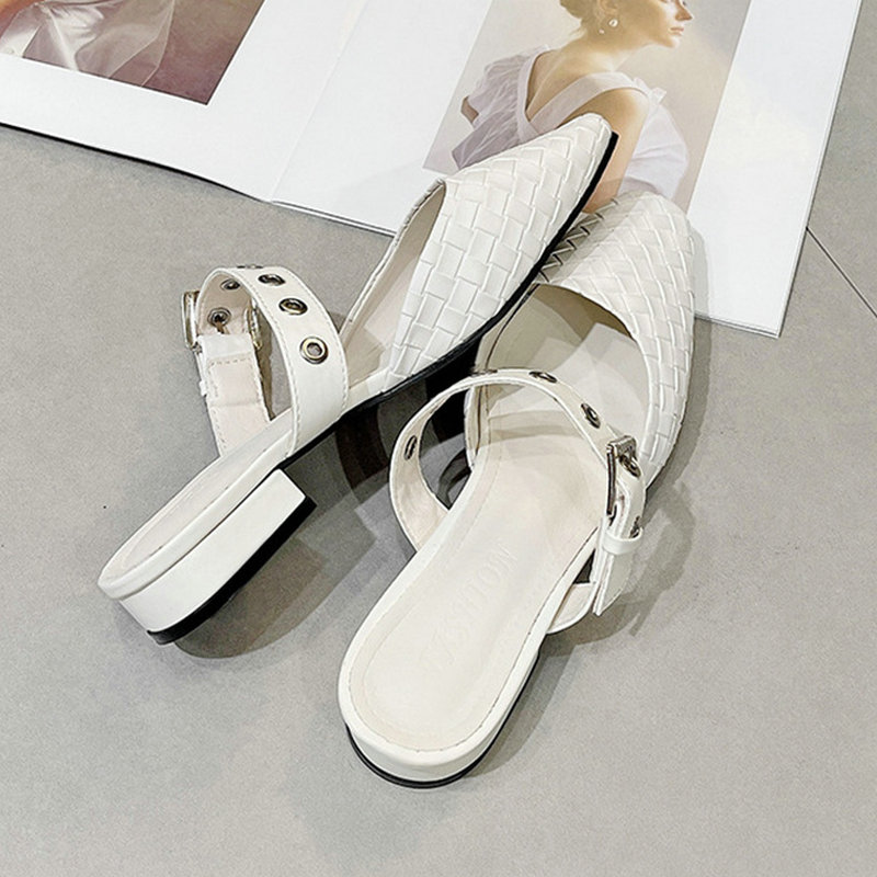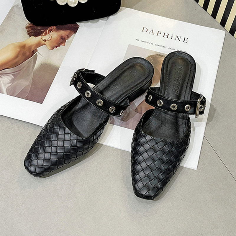 人気沸騰 レトロ スクエアトゥ ローヒール ミュール サンダル 小洒落でchic 編み上げスタイル ミュール 美脚 サンダル ハイヒール 通勤 おしゃれ ミュール