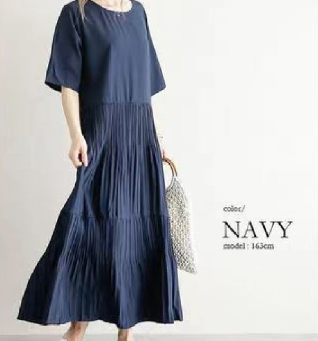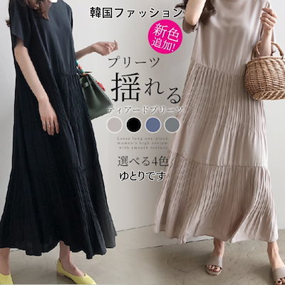 【本日限定】即納!ゆったり 揺れるトレンド プリーツ ワンピース ロングワンピース 夏 半袖 無地 プリーツ ゆったり おしゃれ 体型カバー シンプル ナチュラル 上品 大人 通 "