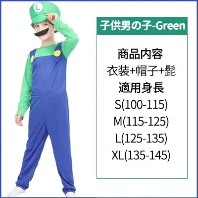 ゲームコス コスチューム クリスマス 仮装 変装 子供用 大人用 【急速出荷】コスプレ衣装 ルイージ風 セット 激安 コスプレ マリオ風 スーパーマリオ風 ハロウィン ハロウィン