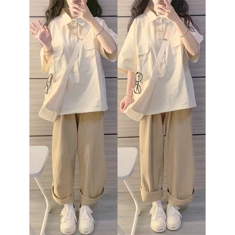2025 韓国 カジュアル・スポーツウェア・スーツ サマー カレッジスタイル ゆったりポロシャツ2点セット 韓国 セットアップ セットアップ スウェット セットアップ