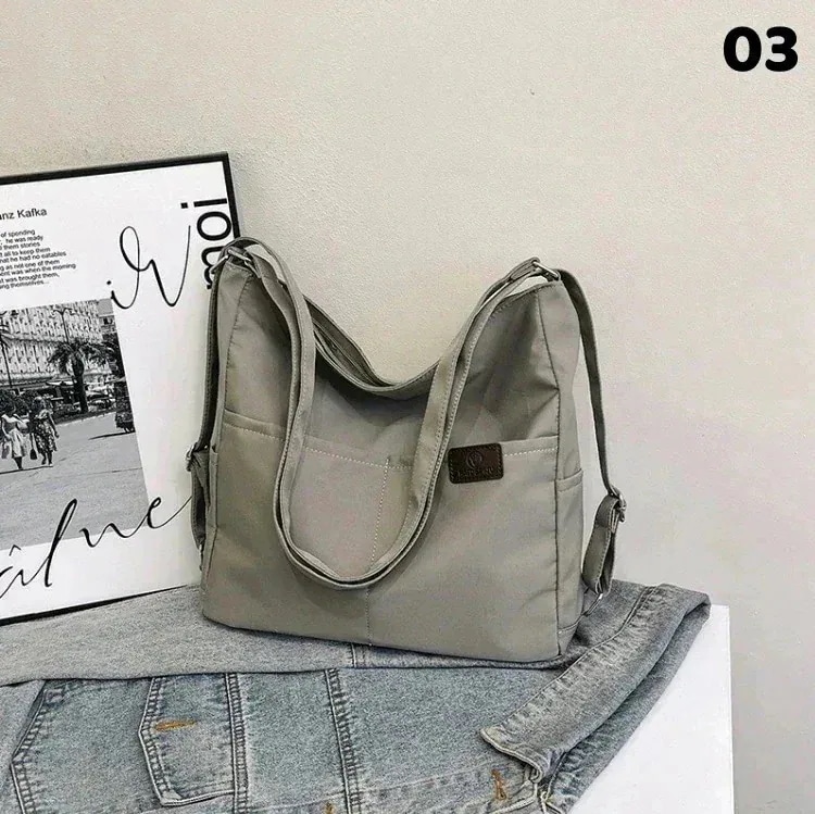 リピで2色買って3色持っています((笑))とてもしっかりした布で縫製もちゃんとしていて、上のファスナーがちゃんとしているので中身が散乱という事もなく、何でも入りとても気に入っています。
