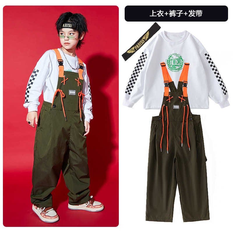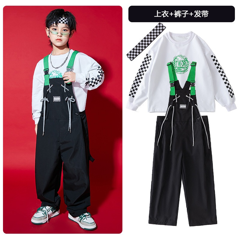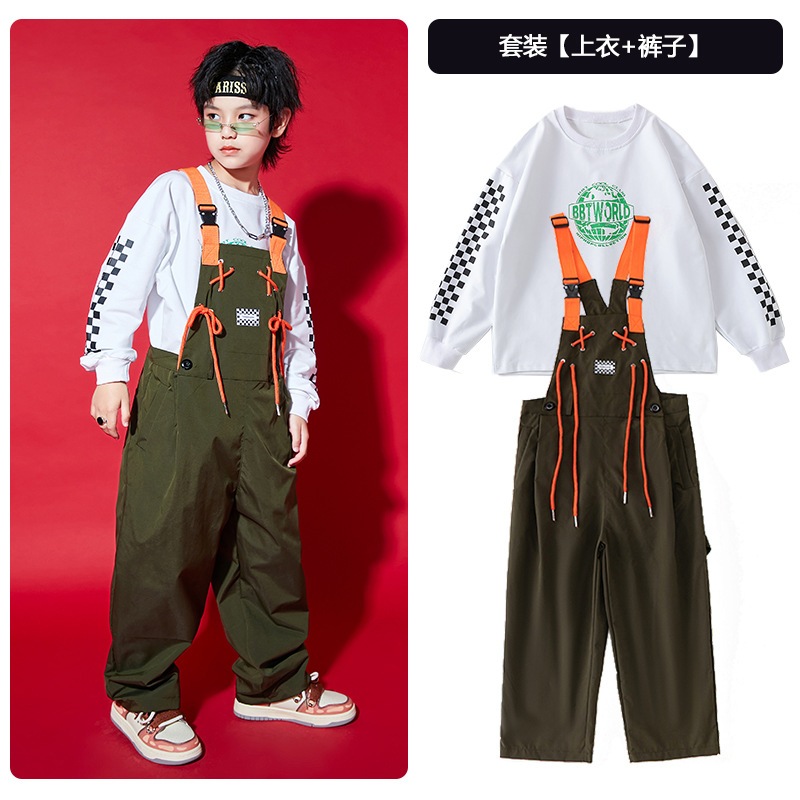 2026 ストリートダンス 子供用 女の子用 パフォーマンス衣装男の子のヒップホップ オーバーオール セットジャズダンス パフォーマンス衣装
