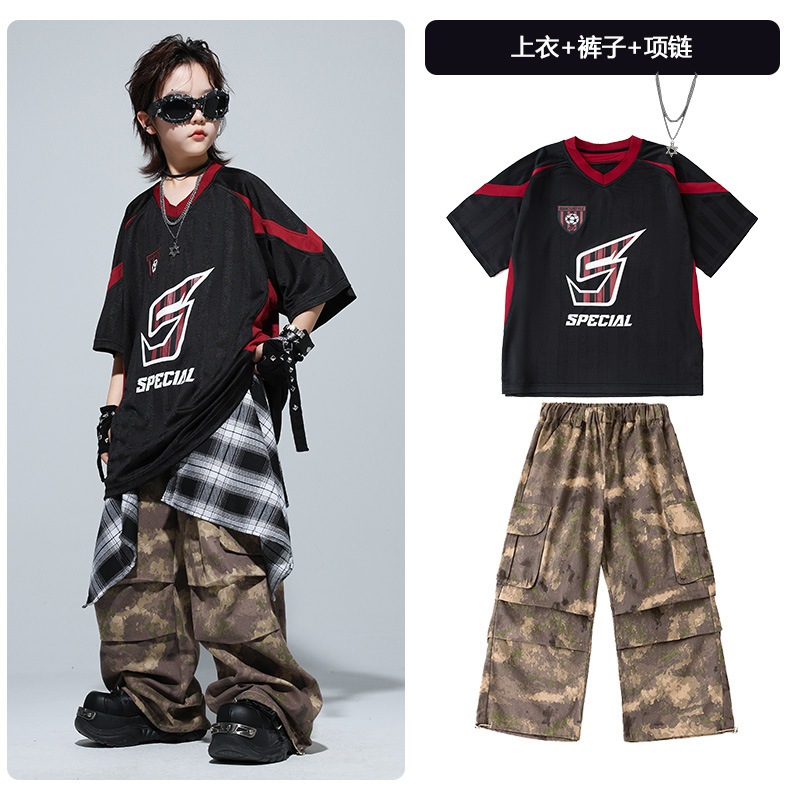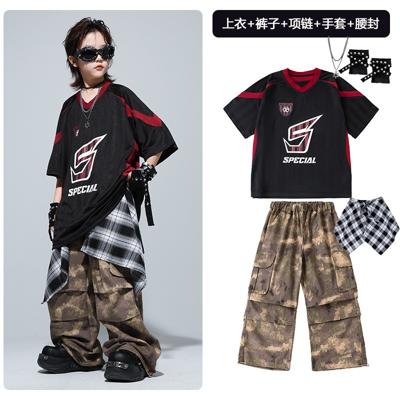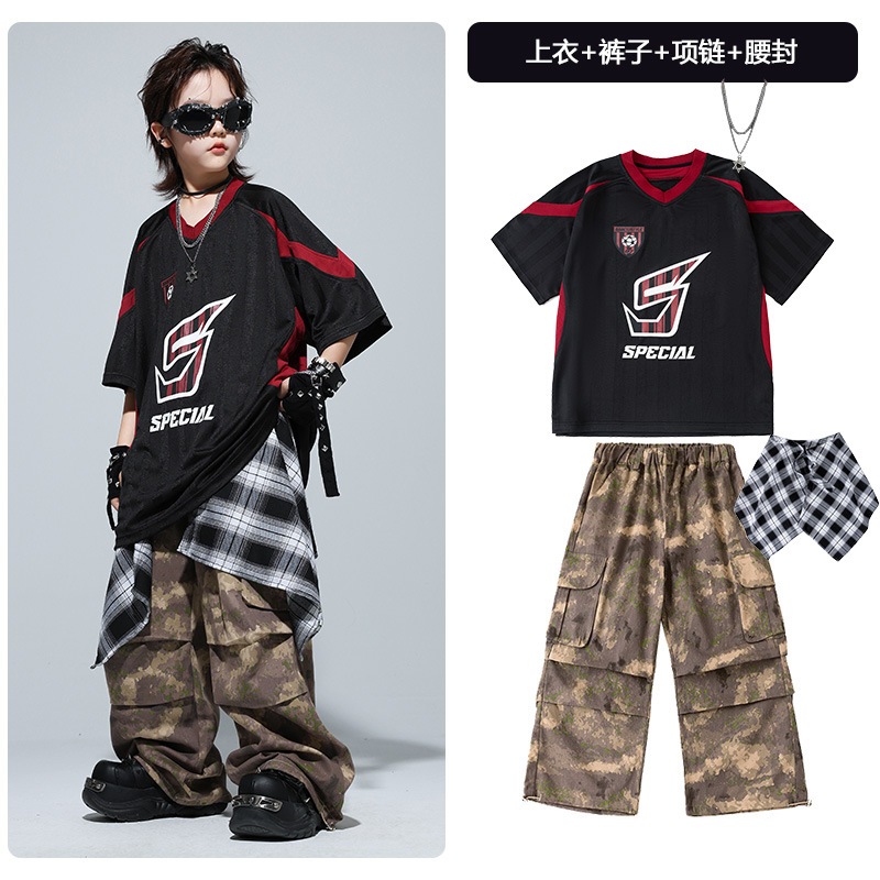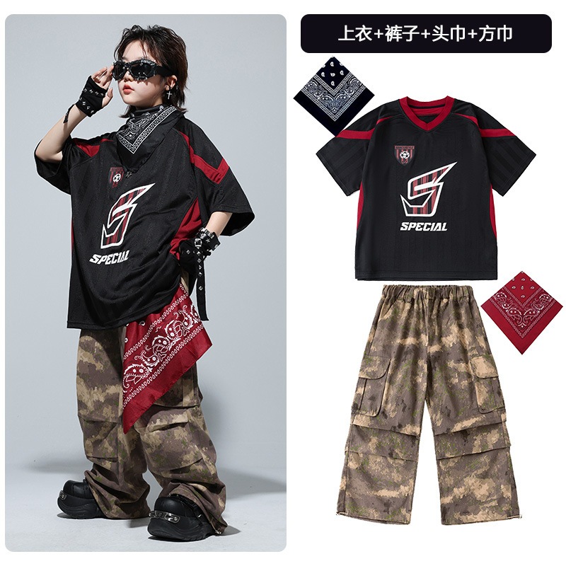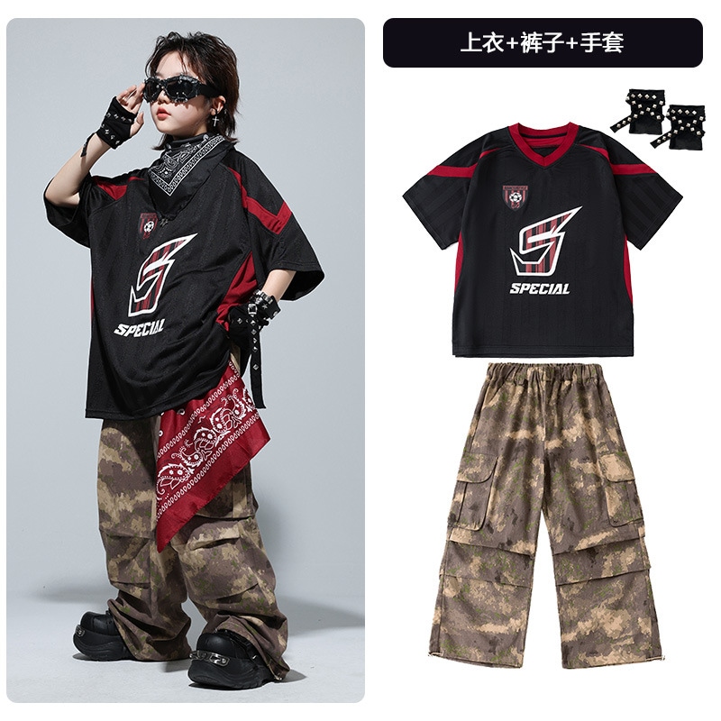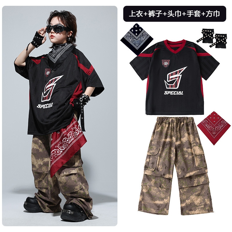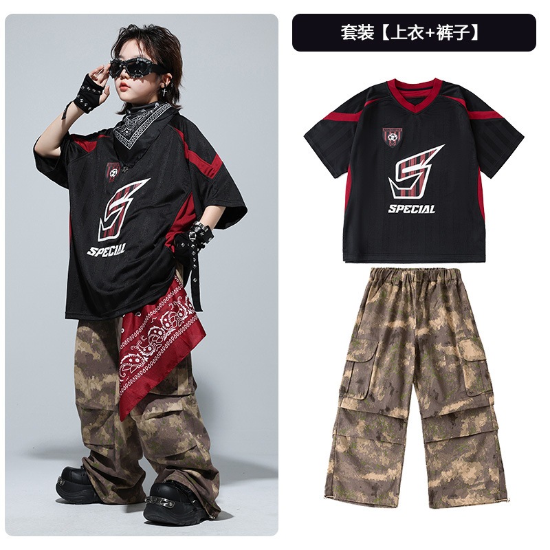 2026 ストリートダンス 子供用 女の子 サマー カモフラージュ ダンス ファッションショー パフォーマンスコスチュームジャズダンス パフォーマンスコスチューム
