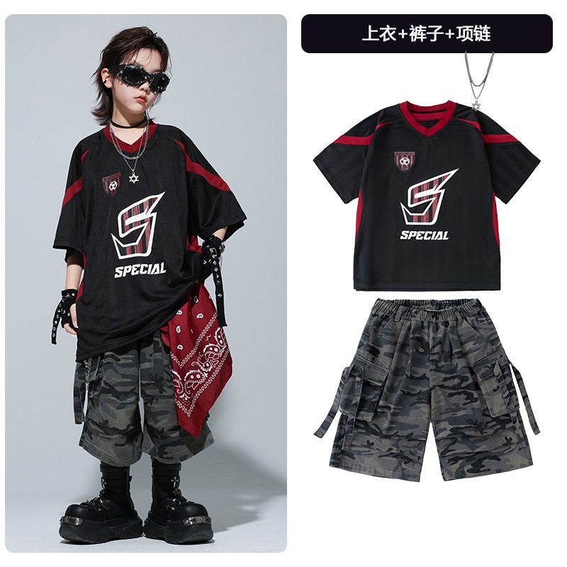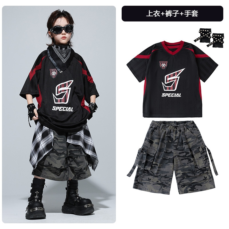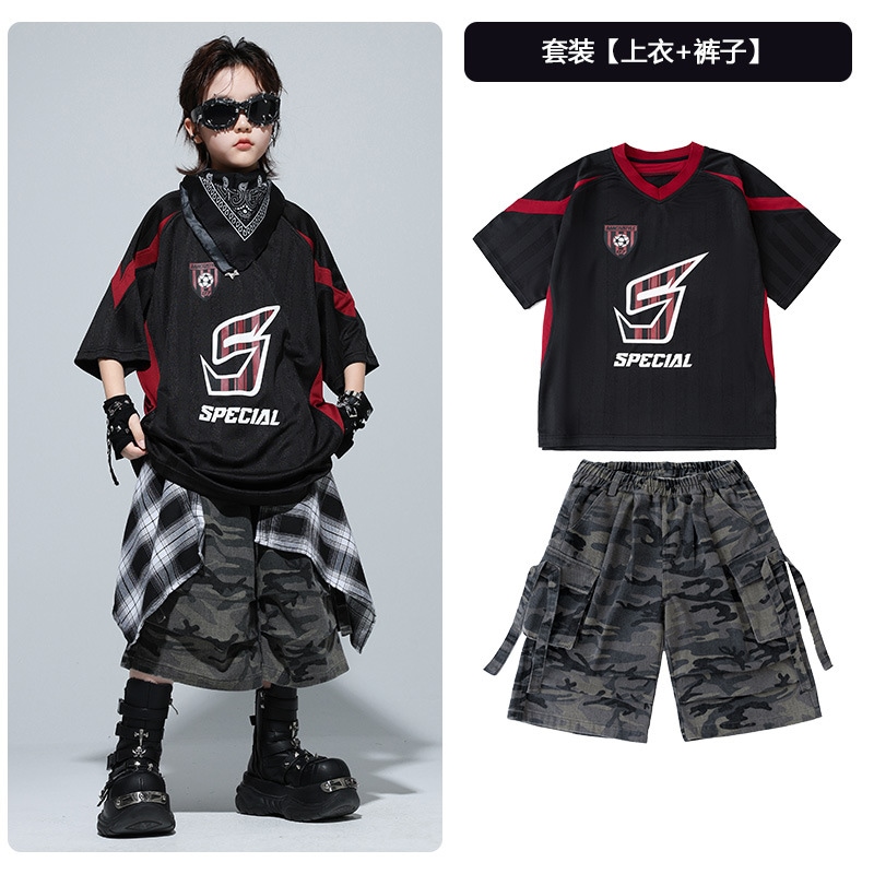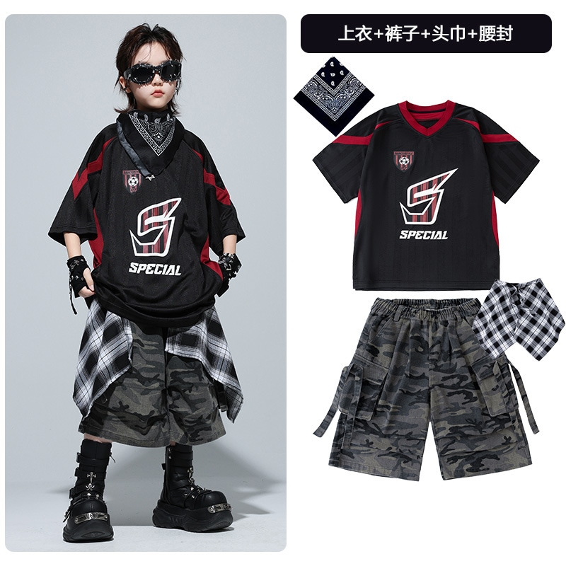 2026年 子供用ストリートダンス 小学生 迷彩柄 パフォーマンスコスチュームトレンディでクールなジャズダンス ハイホップ ストリートパフォーマンス衣装
