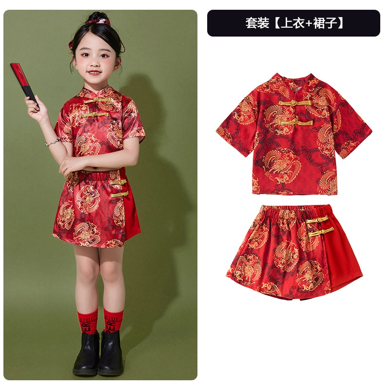2026 子供用パフォーマンスコスチューム中国鯉馬面スカートパフォーマンスコスチュームダンスコスチューム中国幼稚園チアリーディングチーム