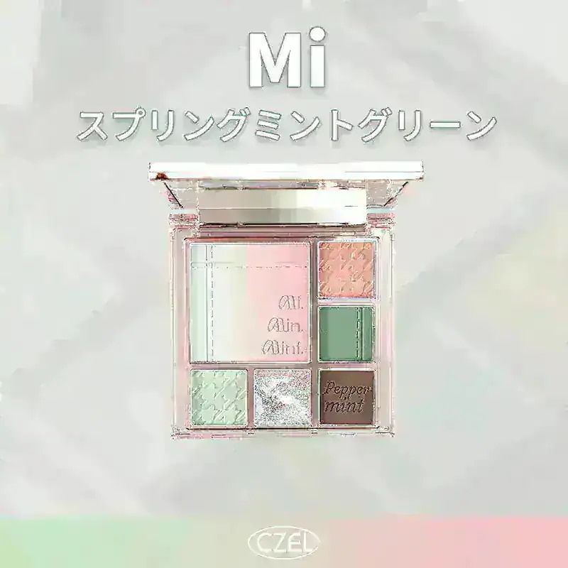 サンプルマーケットで CZEL フルメイク#Mi スプリングミントグリーン 当選しました✨ありがとうございます☺️ 1つのパレットでフルメイクができる! 旅行などにひとつは持っておきたいと思っていた色々揃ったパレット♡ 普段使わないカラーに挑戦してみたいと思い、グリーンが入ったパレットを選ばさせてもらいました!\レビュー/ こーんなかわいいカラーパレット、絶対に使いこなしたい🔥 そんな思いでメイクに挑戦。 粉質はさらさらしていて筆にとりやすい。粉は飛びますが肌あたりが良く、心地良いです✨ アイシャドウは右上のピンクとオレンジが混じったようなカラーが可愛かったです🧡🩷 そして使いこなせるのか挑戦のグリーン👀 んー!やっぱり難しい!淡いミントグリーンも濃いグリーンもほんと緑って感じで発色(当たり前なんですけど)するのではっきりした存在感が出て、普段ピンクメイクの私には違和感+濃すぎるかもって思っちゃいました。でもでもまぶたに乗せると少しグレーがかったグリーン見えるのでかっこいいクール系の方にお似合いになるかも✨ あと、アイラインのように乗せてみるとかわいいかもと思いました💭 そしてチーク、これ、すっごく期待してた😭♡ 頬にニキビ跡が赤く残っているので、パウダーのグリーンで赤み補正ができると聞いてこれはいい💓と! グリーンを乗せると白が前に出る😳 明るい白浮きするフェイスパウダーを乗せたような感じ。そして隣のピンクのチークを乗せるとまたも白いカラーが前に出てきてピンクが出てこない? んん??? そして2つが混ざると、パープルのような。 そして時間が経つとグレーっぽくなっちゃいました🩶😭んー、顔色がすごく悪い感じになっちゃう、、 でも良い方法を見つけました! ミントグリーンのチークをつけて、肌を白みがかった頬にしてから1番右のチーク、または手持ちのピンクチークをつけるとかわいい白みピンクに🤍🩷 ほわほわのうぶ毛を感じる幼い子供のような儚げ頬がかわいい🫶 まだまだ使いこなしたいので、使いこなせるその日まで色々試行錯誤してみようと思います! なんだか熱がこもったレビューになりました🤭 カラバリ豊富なアイシャドウはやっぱり楽しい💓