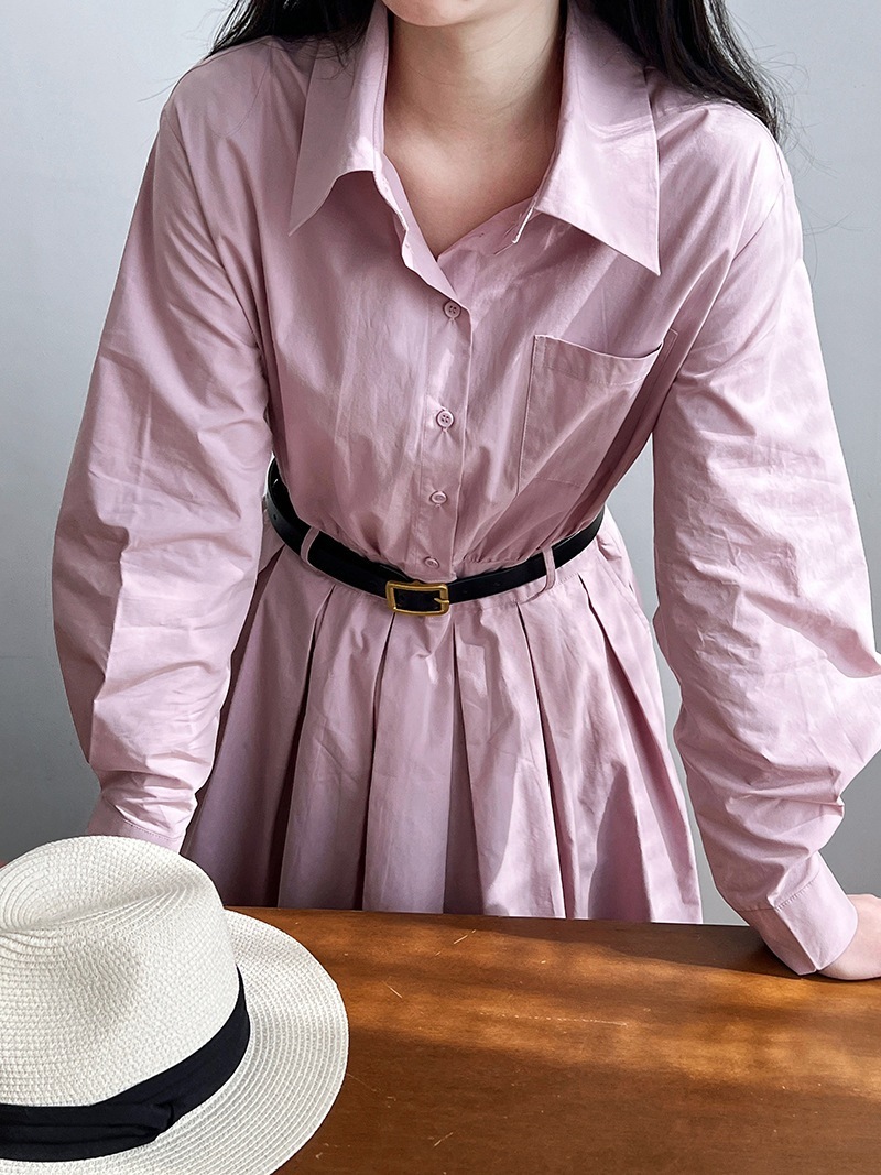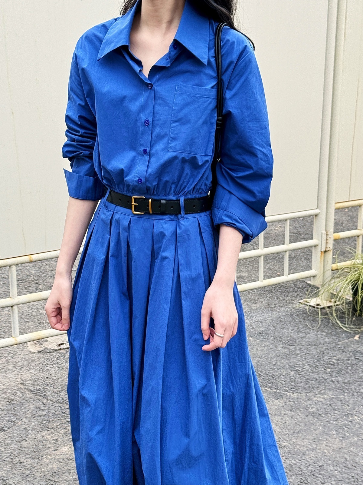 シャツワンピース レディース 春夏 気質 ウエストスリムロングワンピース