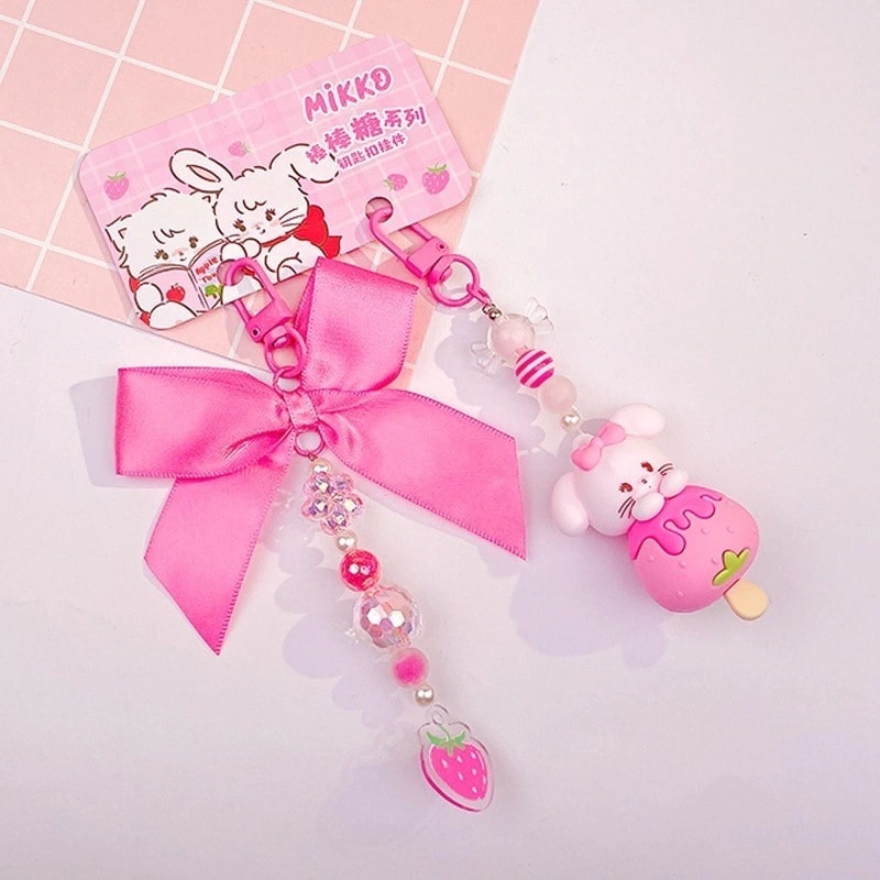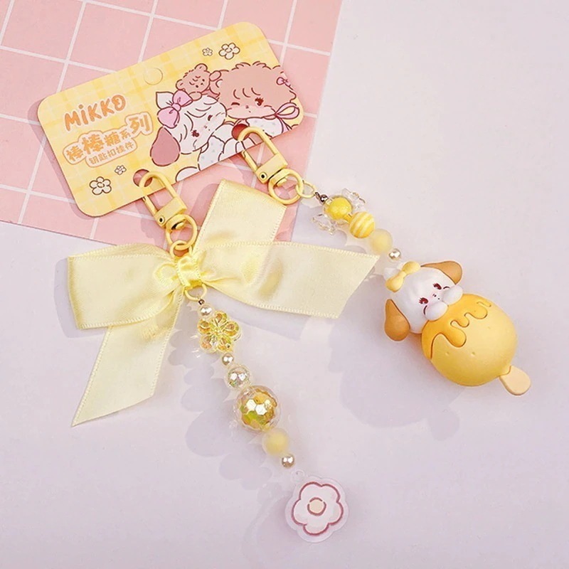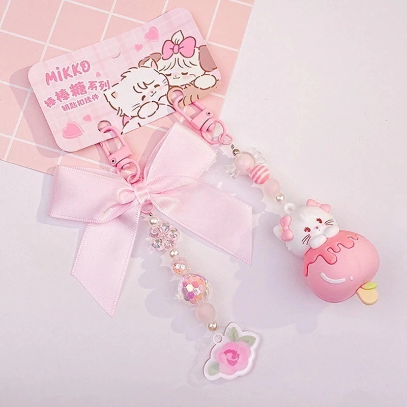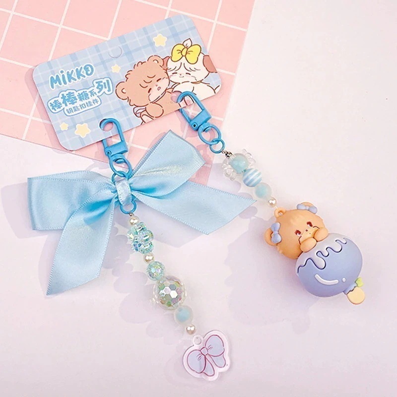 カートゥーンMikkoロリポップビーズキーホルダーレディースバッグストラップ自動車キーホルダーストラップ小物ギフト