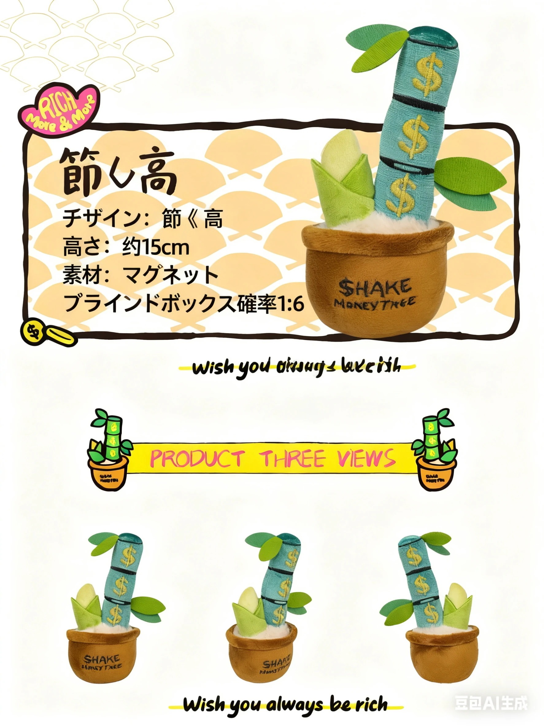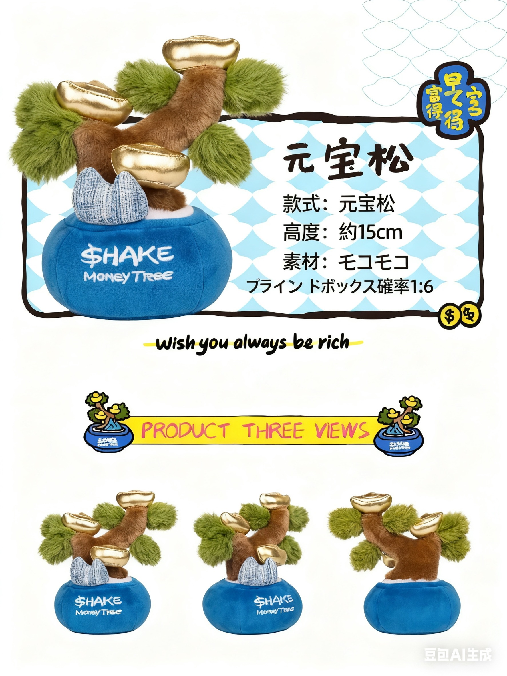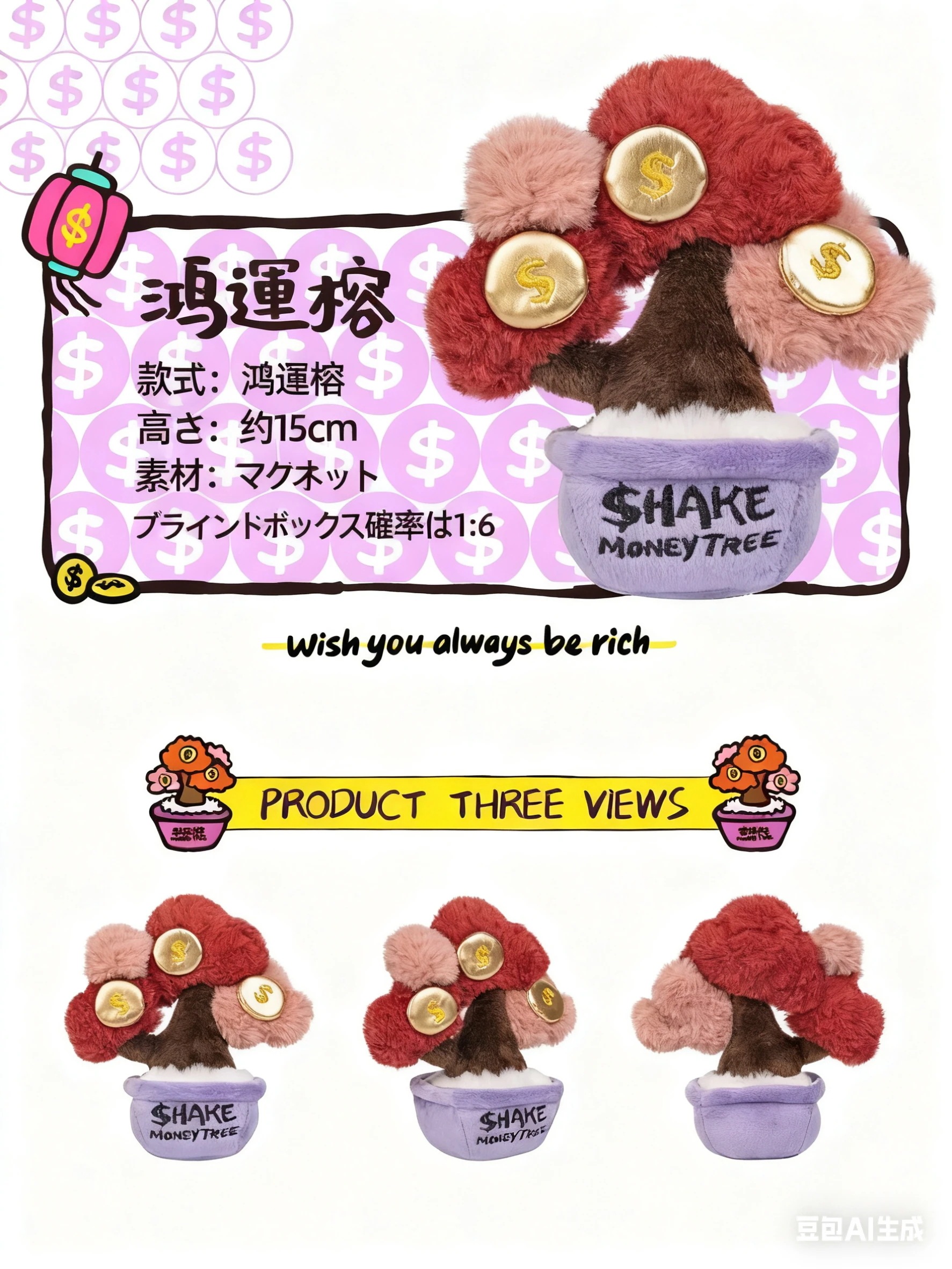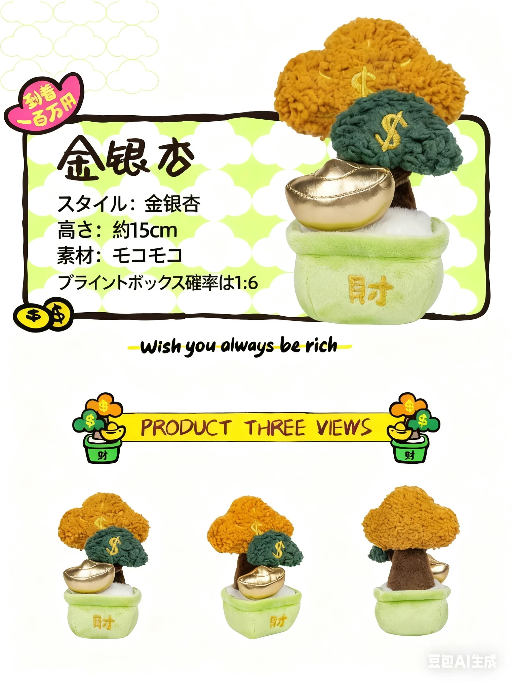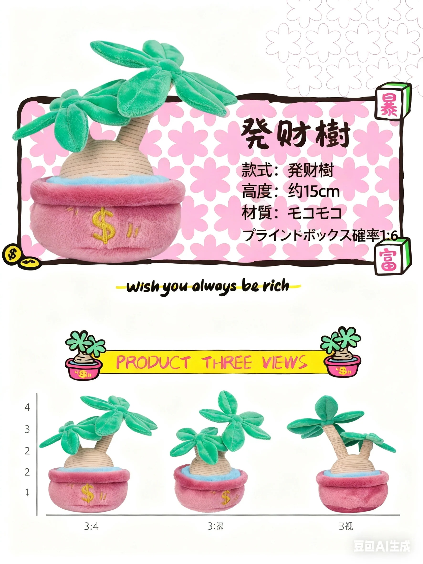 【公式正規品】POP SUNDAY ラッキーゴールドツリー ぬいぐるみ フィギュア 520ギフト・開店祝いにぴったり!幸運を招く福の木マスコット女性に最適な可愛いデザイン手作り感満載で癒しのアイ