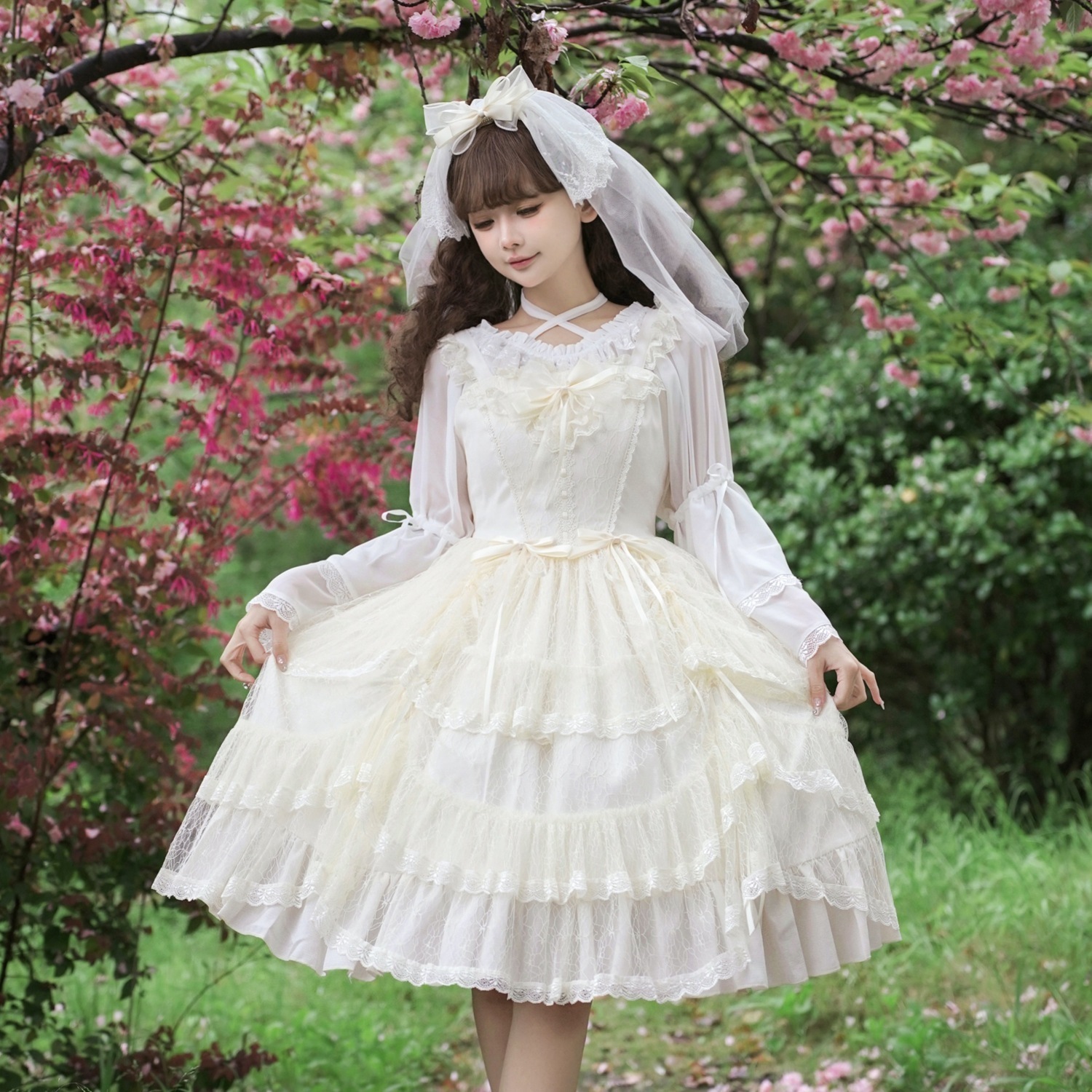 春と夏のロリータアイリスラブロングスカートエレガントな女の子の天使のロリータプリンセススカートロリータドレスプリンセススタイルのドレス