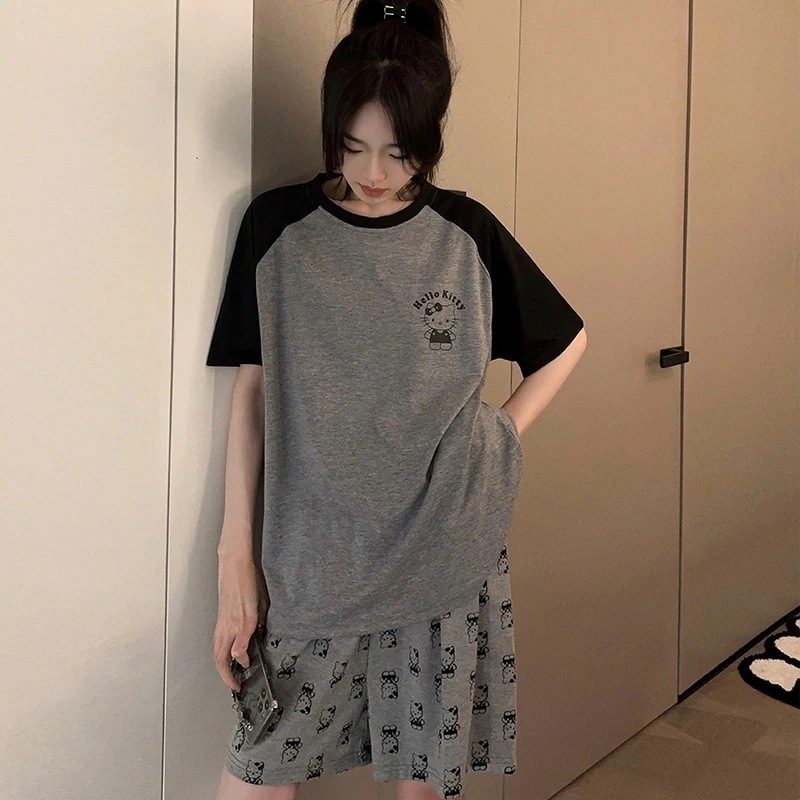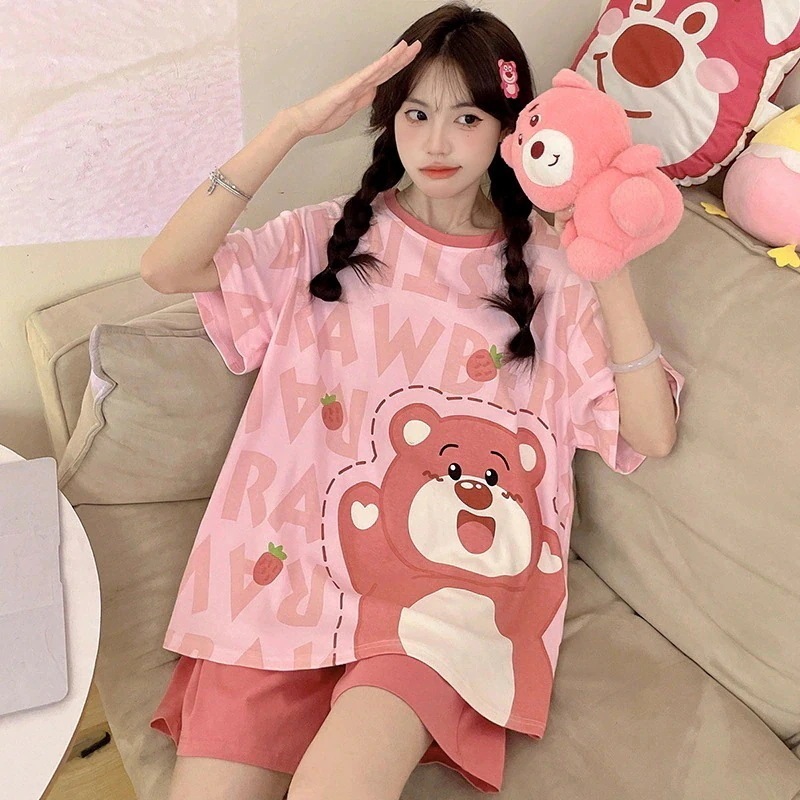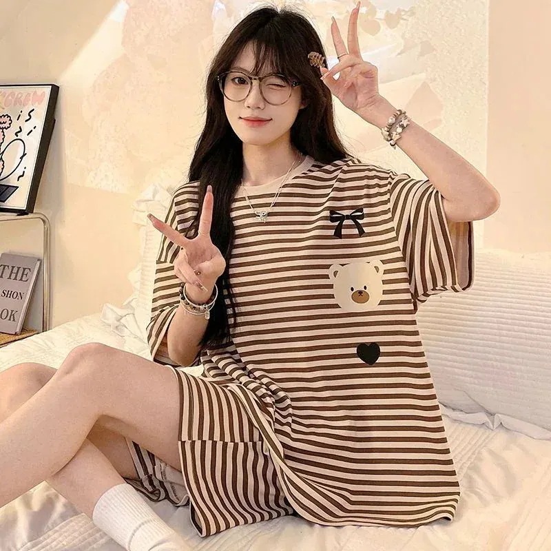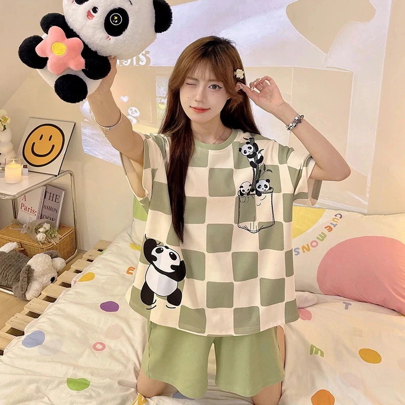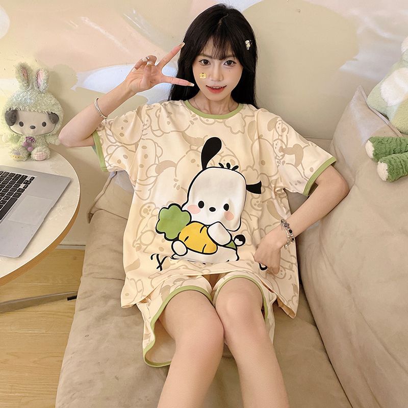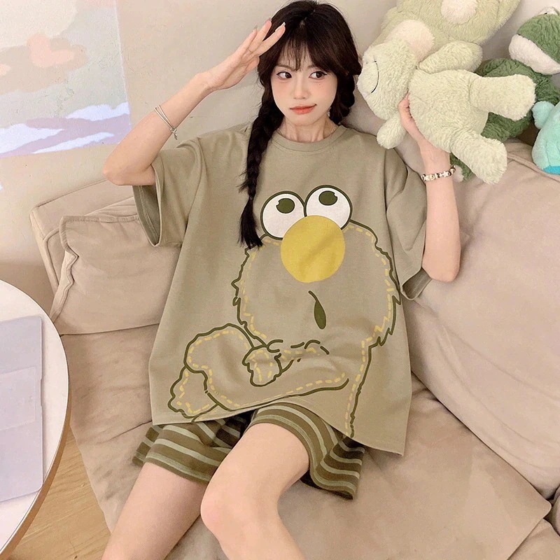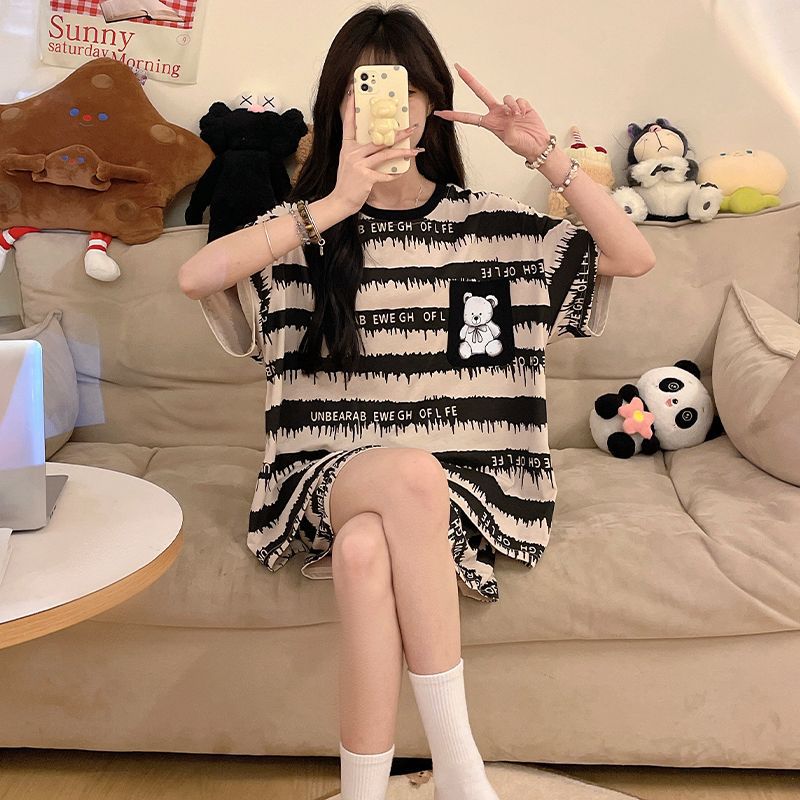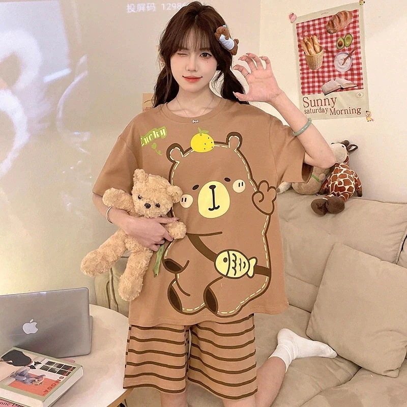 夏パジャマ レディース半袖でゆったりと肥えたサイズをプラスした200斤の新しい部屋着は2枚セットを外に着ることができる ルームウェア