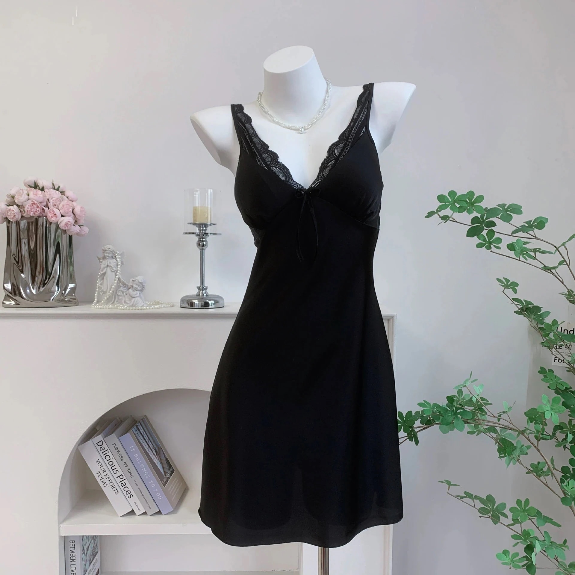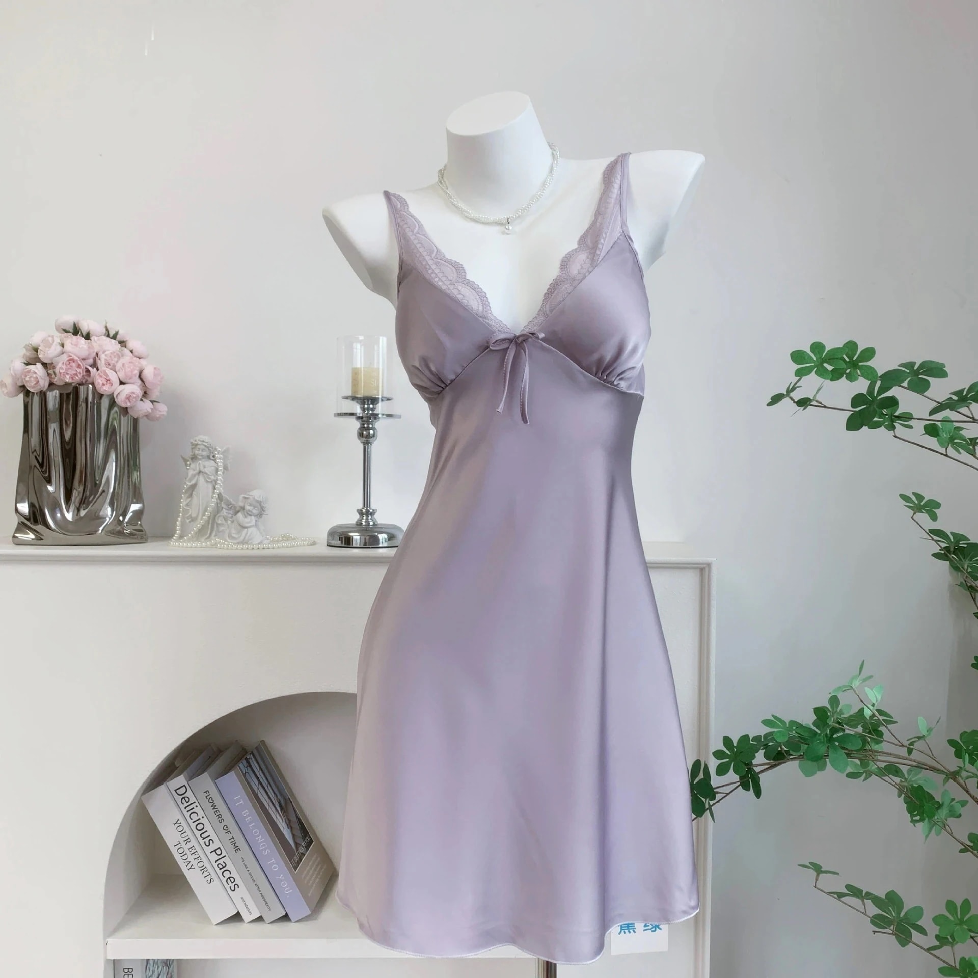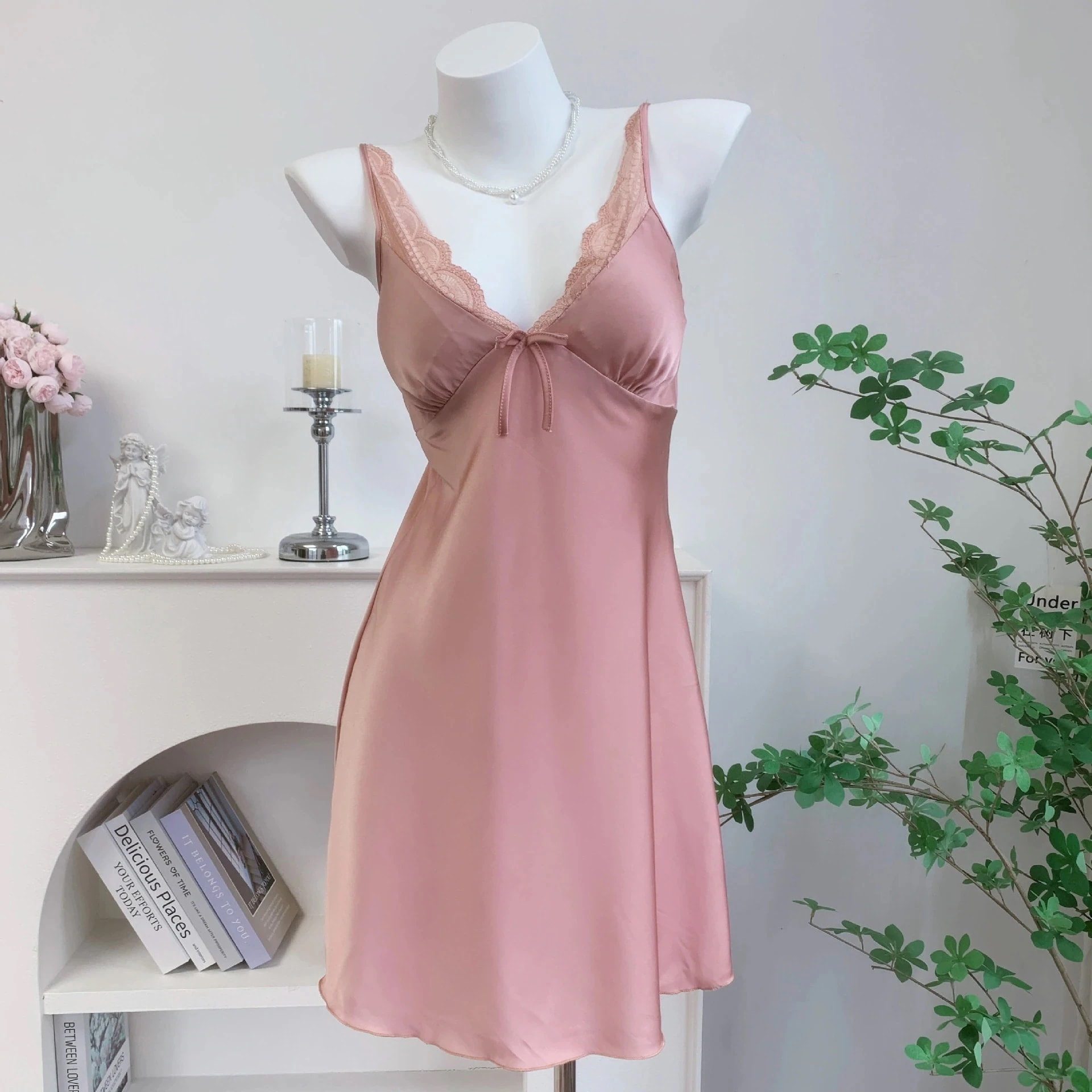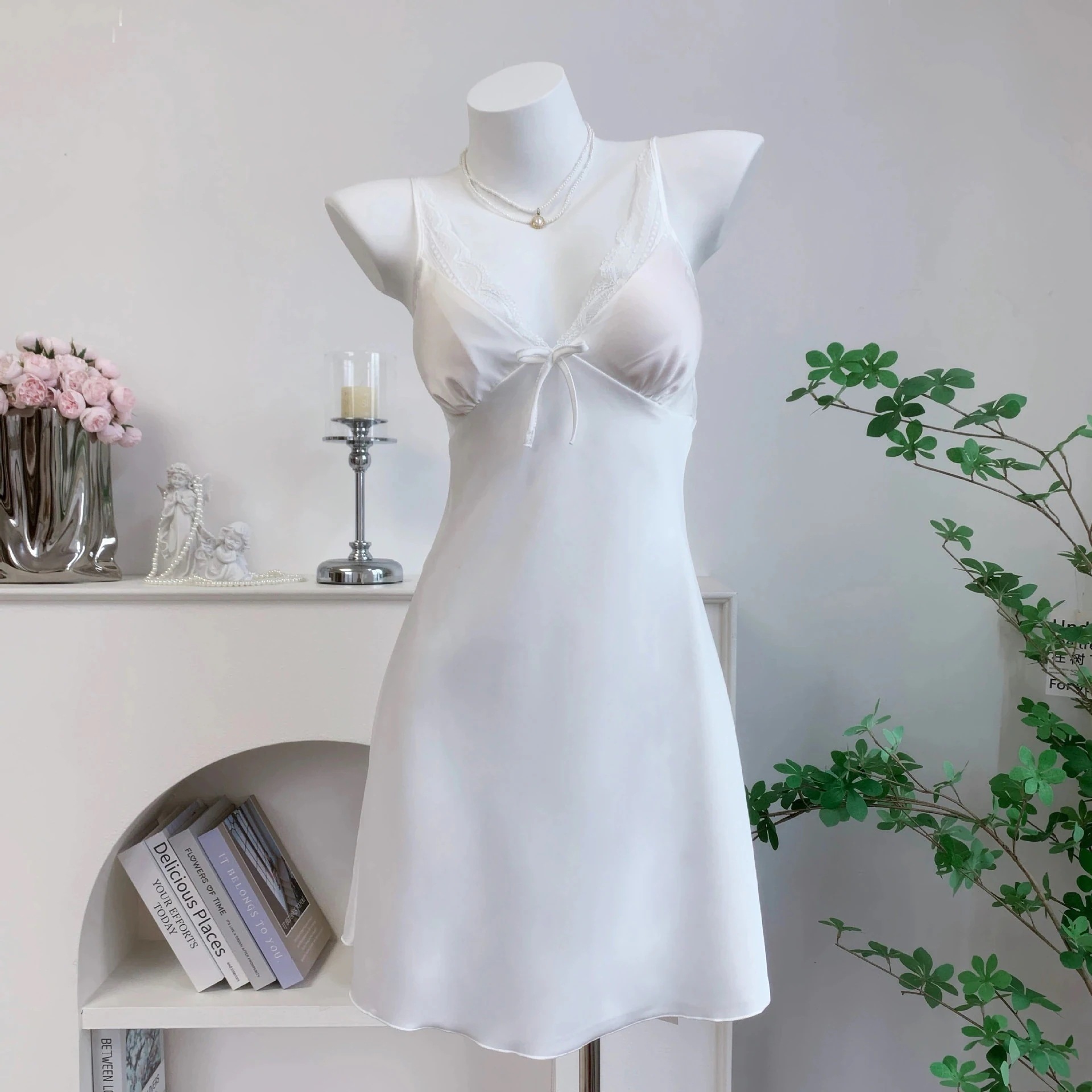 夏パジャマ レディースセクシーパジャマレディース夏のキャミソールスカート氷雪リボン胸当て純色高級感スリーパースカート ルームウェア