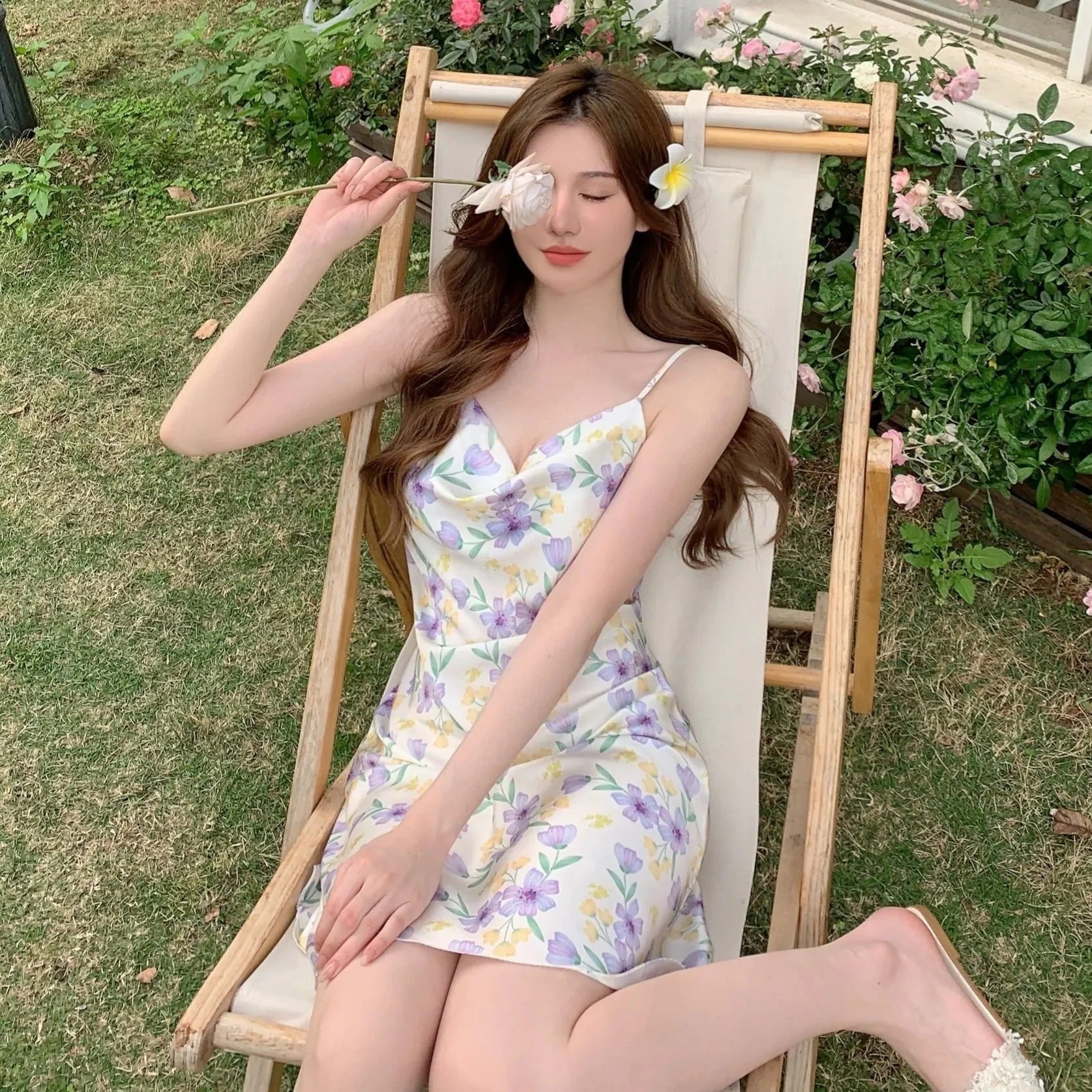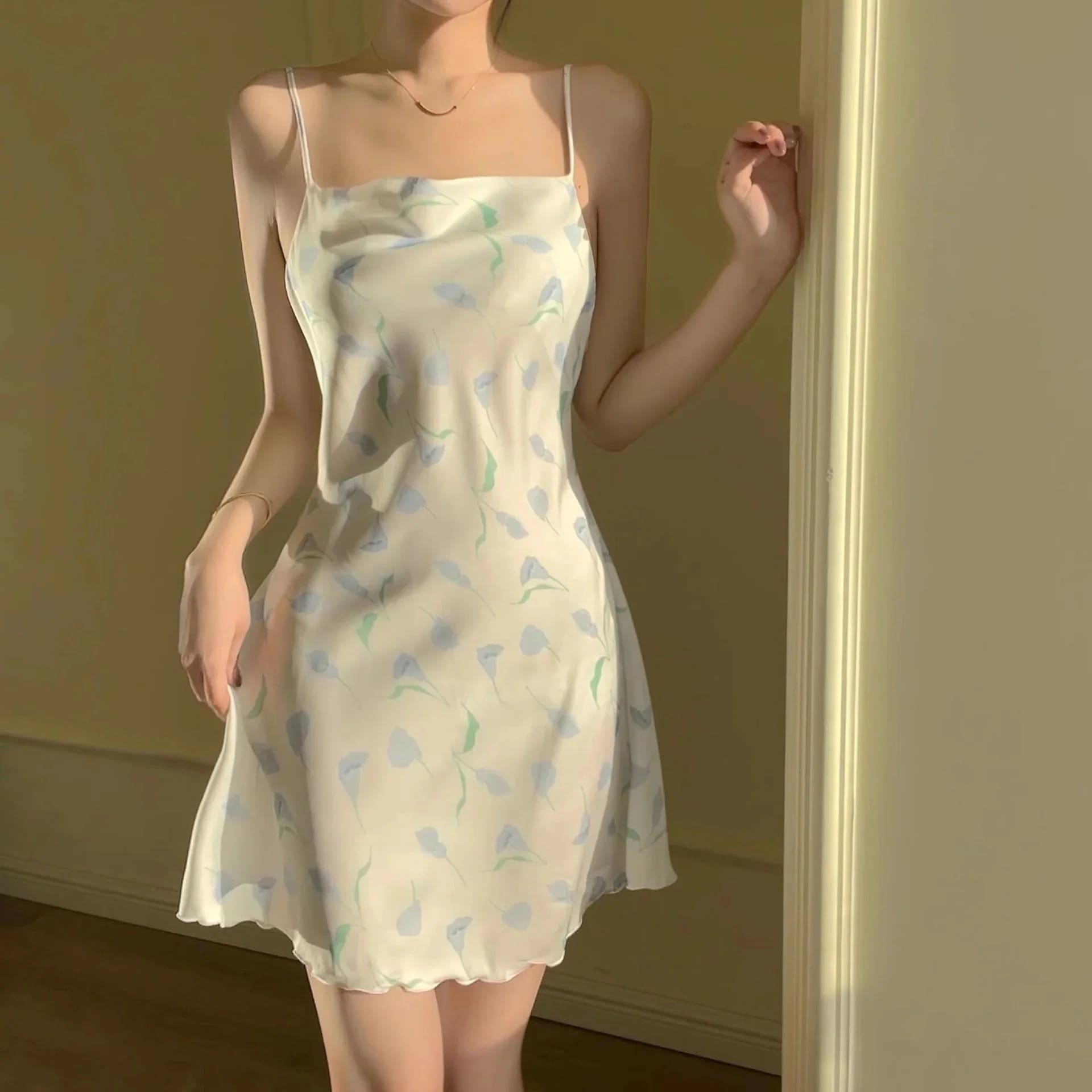 夏パジャマ レディースセクシースリーパーレディース夏キャミソール氷シルクパジャマinsプリント純欲パジャマ ルームウェア
