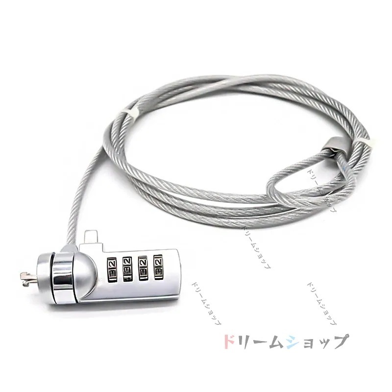 セキュリティワイヤー ダイヤル式セキュリティワイヤーロック 4桁 ダイヤル錠 盗難防止 PC パソコン用 ワイヤー長1.8m 直径3.5mm (シルバー)