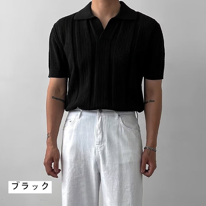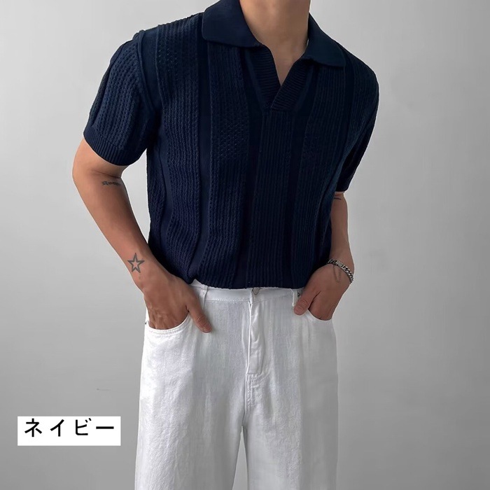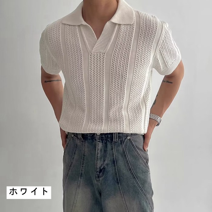 40代 サマーニット メンズ 半袖シャツ 透かし編み ポロシャツ 50代 ゴルフウェア