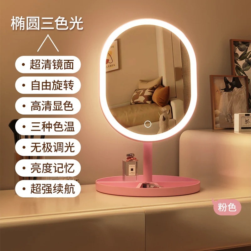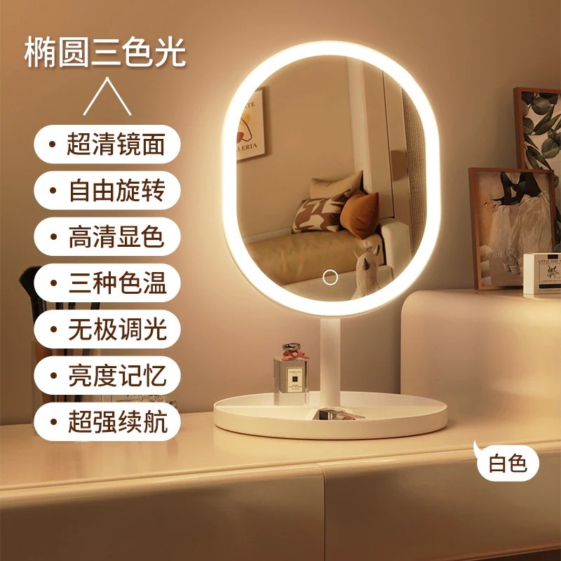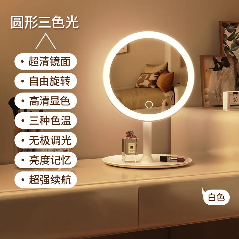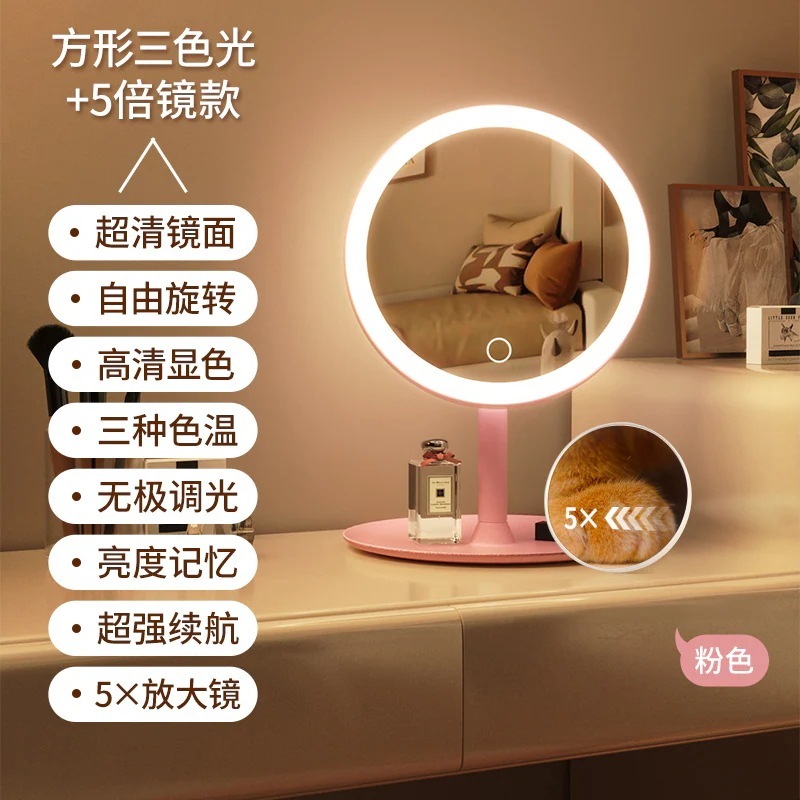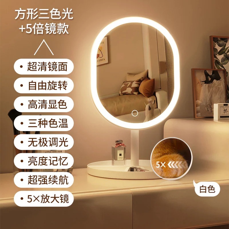 女の子のためのライト付きスマートledメイクアップミラーベッドルームのための小さなミラーの小さなミラーバニティミラー