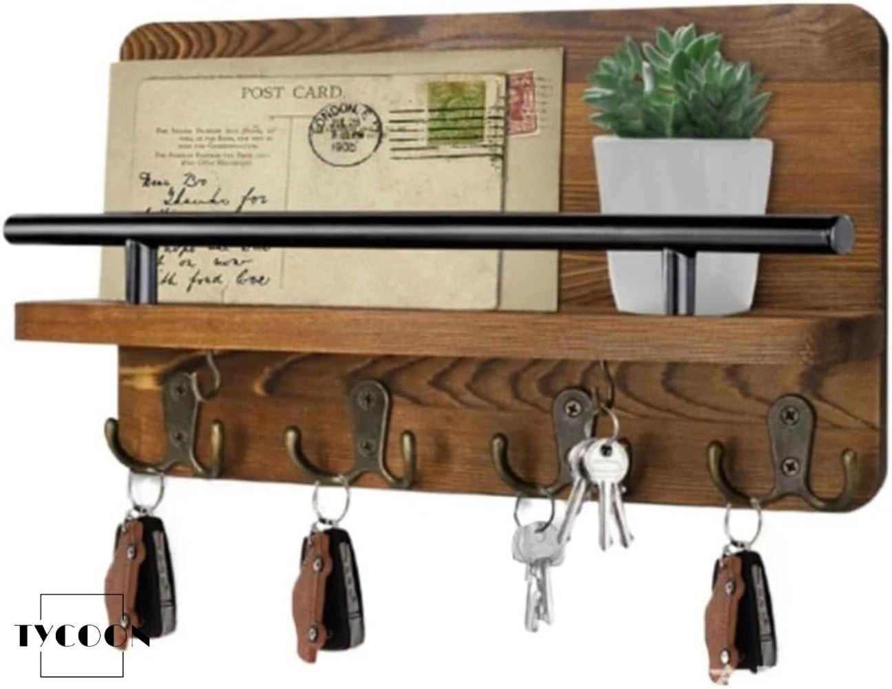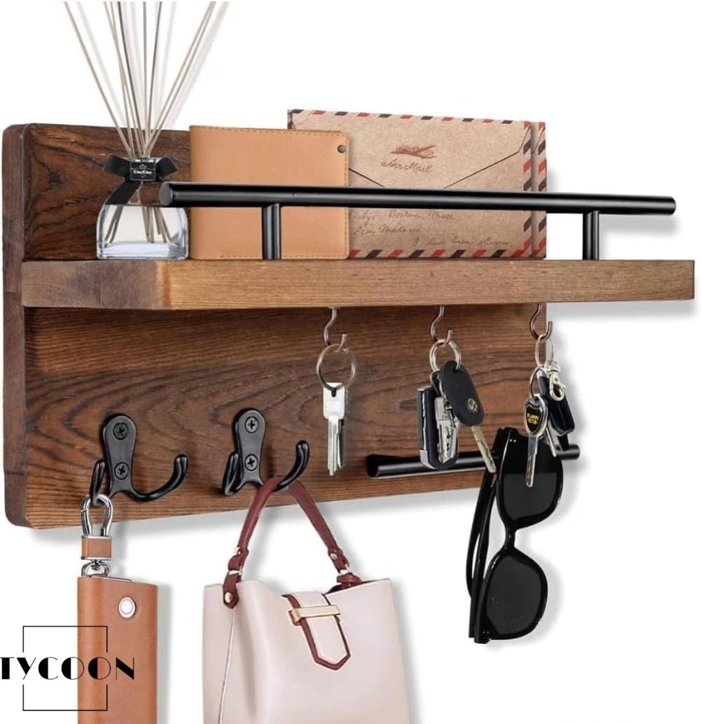 rimepic急キーフック 玄関 木製 壁掛けフック 鍵置き 鍵掛け キーハンガー おしゃれ 収納ラック 飾り棚 小物ホルダー 壁面収納 高耐荷重 ウォールラック コート 帽子 小