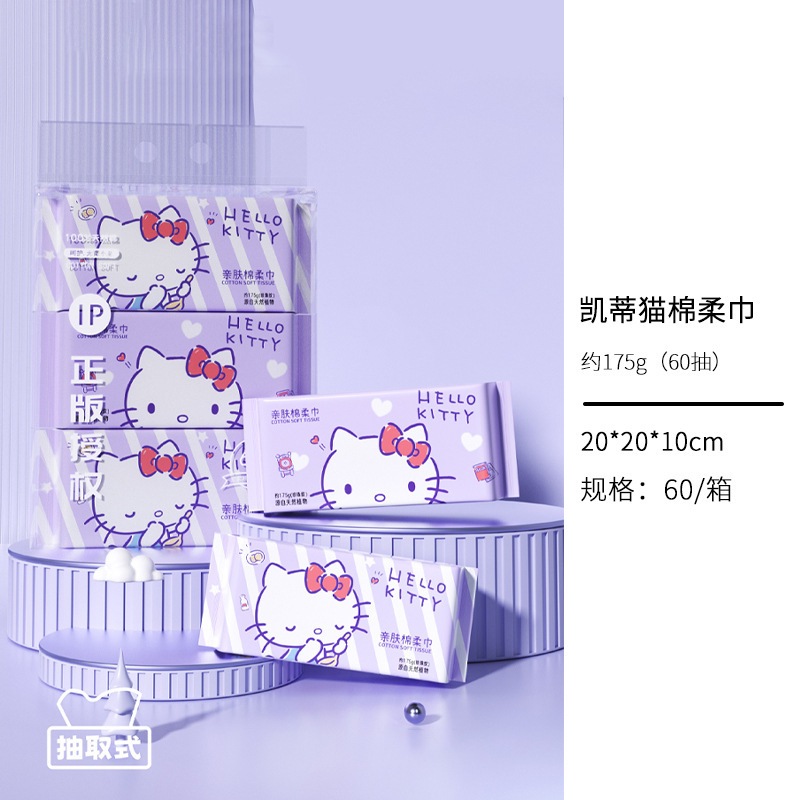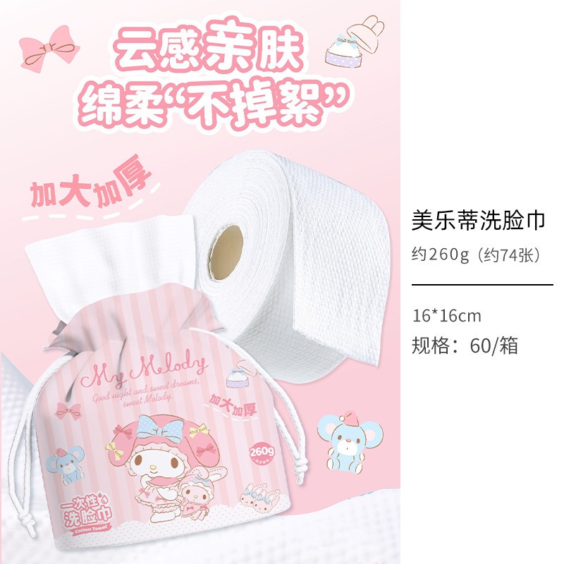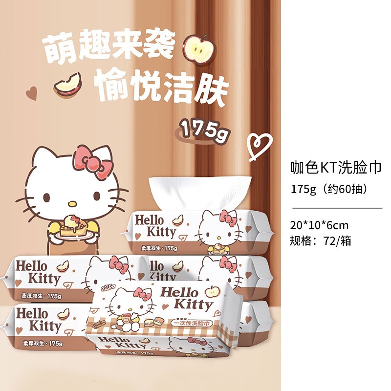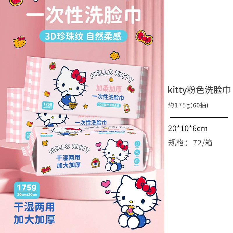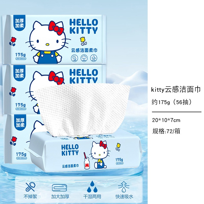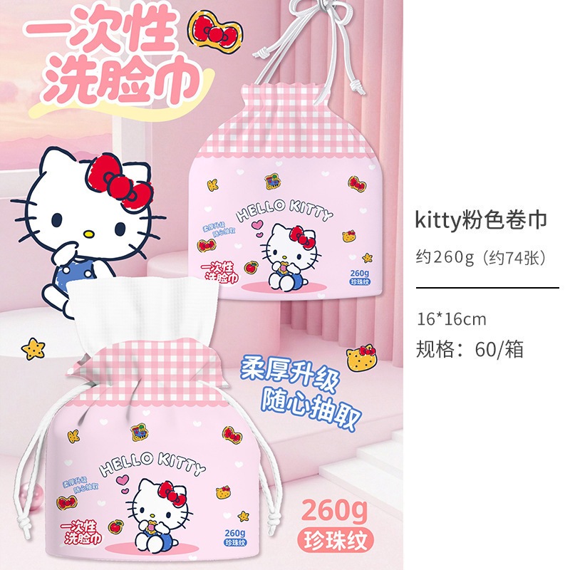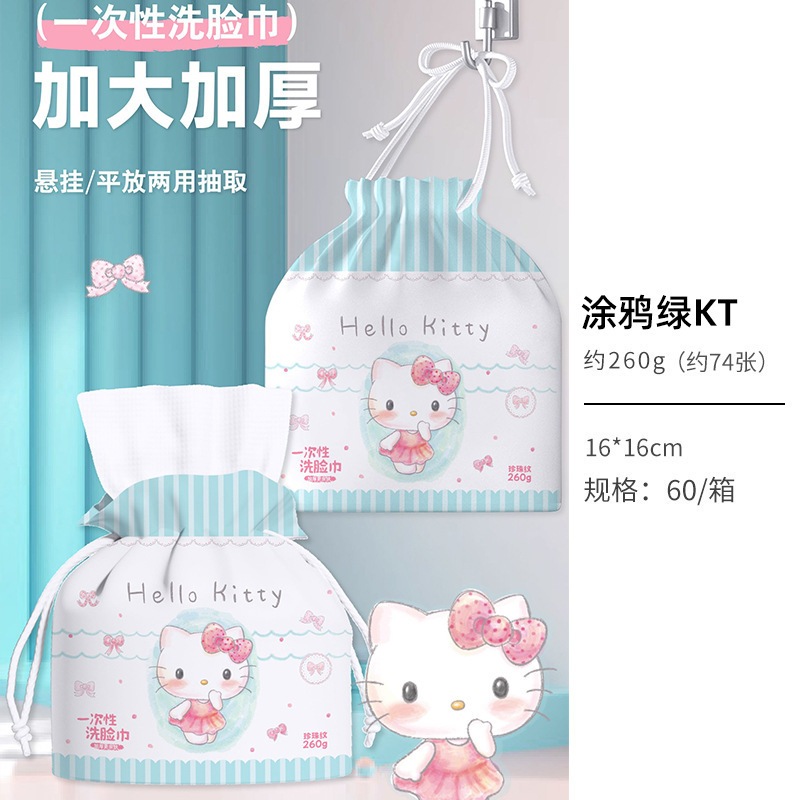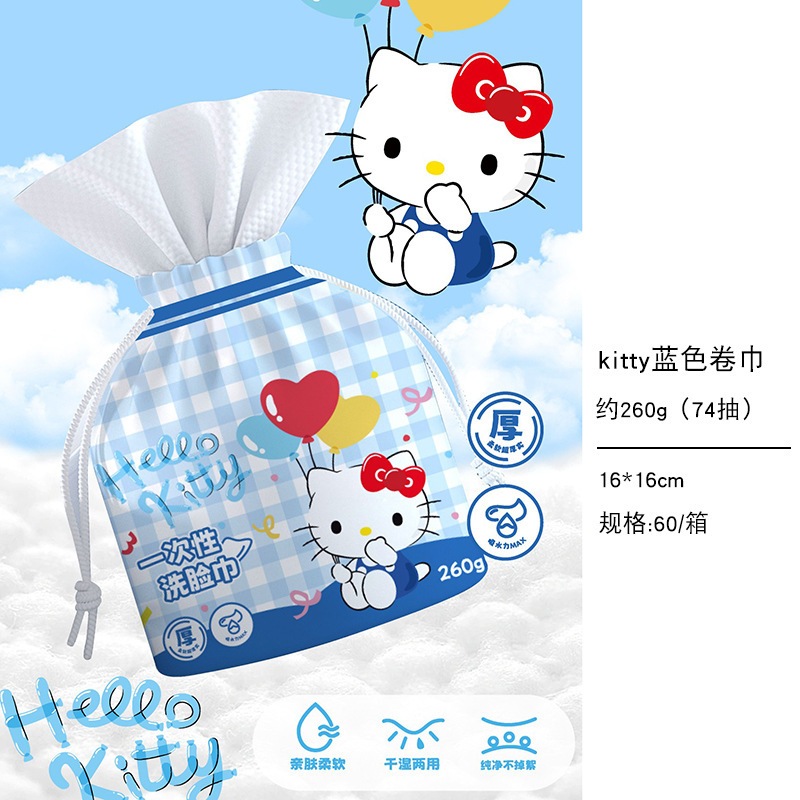 キティーちゃん 洗面タオル ポップアップ式 使い捨て厚手コットンタオル ウェット&ドライ兼用