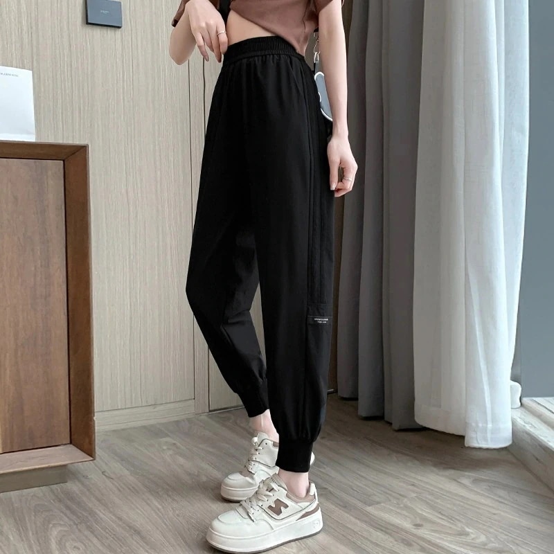 接触冷感ボトムス スラックスパンツ 速乾性スポーツパンツ 小さな足のためのアイスシルクストレッチ通気性ハイウエストランニングパンツ カジュアルフィットネスアウトドア日焼け止めパンツ 韓国ファッション