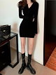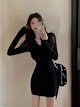 パーティードレス ドレス ワンピース 韓国ファッション ネットレッド 長袖ニットセーターワンピース レディース ミニスカート 大きいサイズ タイトスカート
