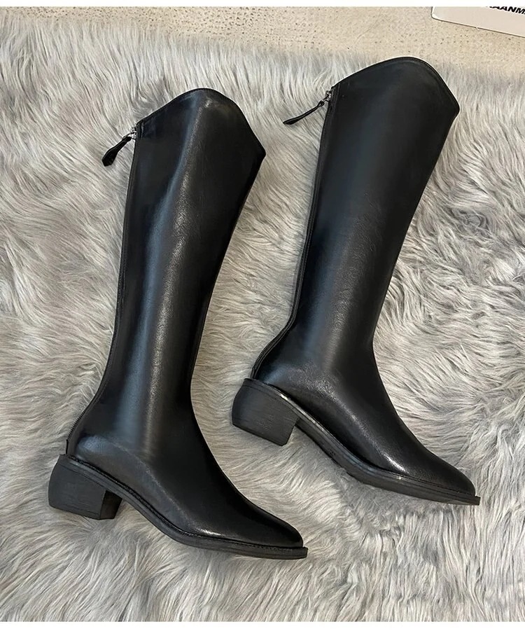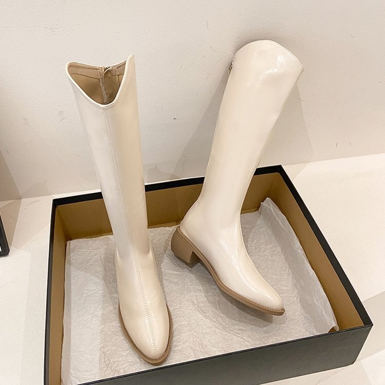ロングブーツ ハイブーツ新しいポインテッドトゥヒールブーツのバックジッパーの韓国語版ロングブーツロングブーツ スタイルアップ!ヒールパンプス