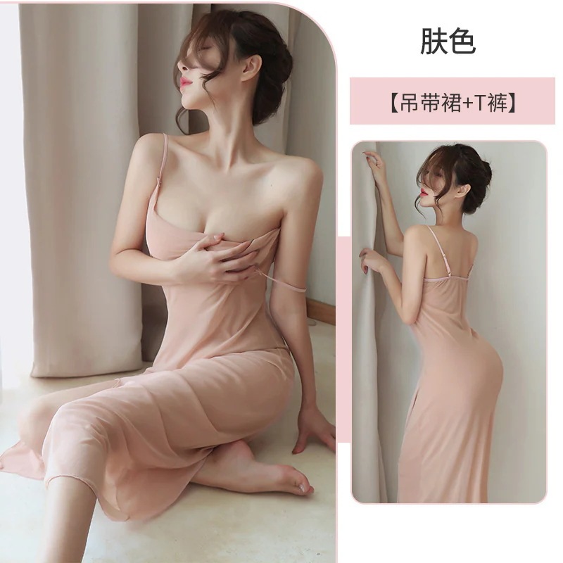エロいコスプレ エロティックランジェリー感情的なナイトガウン分割ロングスカートローカットの誘惑ナイトウェアセット