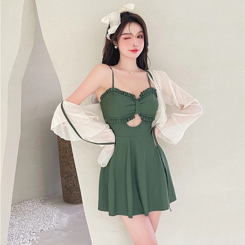 【2025新作】水着セット 韓国 オールインワン水着 着痩せスリム見え レディース 可愛い 体型カバー 温泉 長袖 水着 高校生 中学生 日焼け防止 紫外線対策
